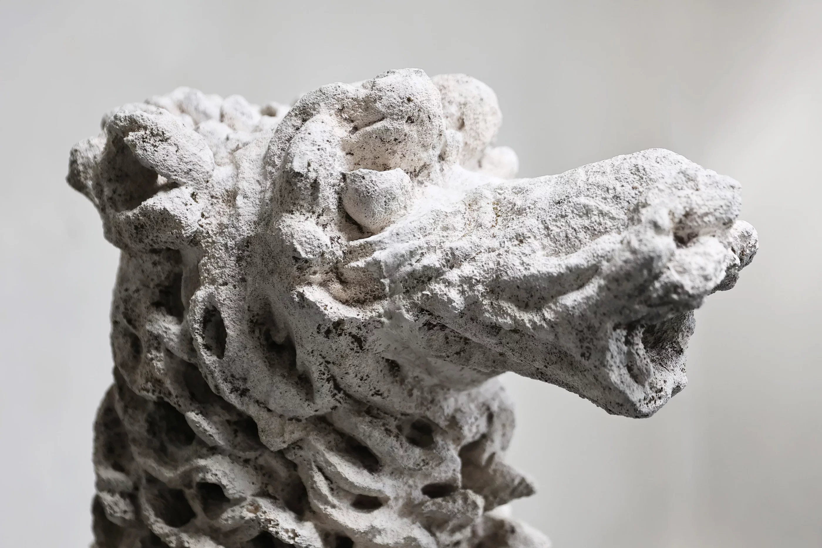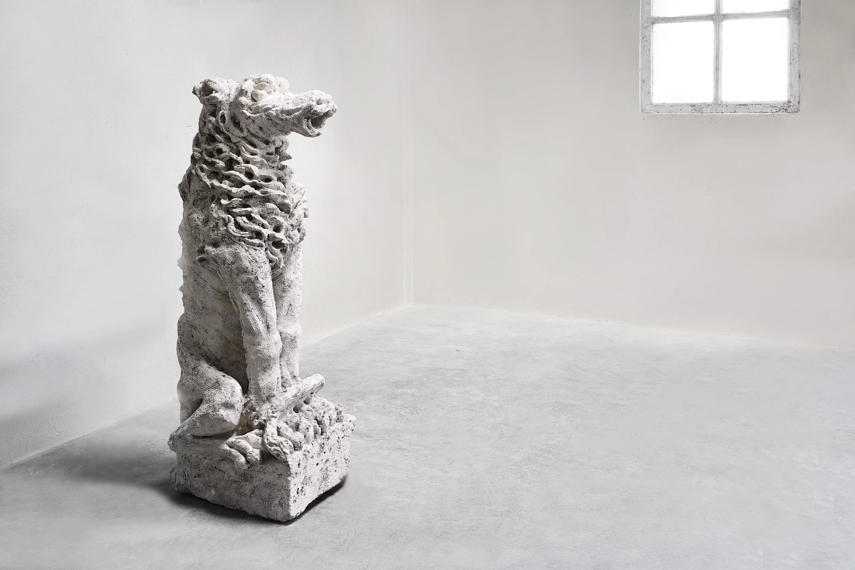 Het beeld heeft een krachtige, sobere vorm en een doorleefde patina die de authenticiteit benadrukken. Daarmee is het niet alleen een decoratief object, maar ook een waardevol erfgoedstuk met karakter.
