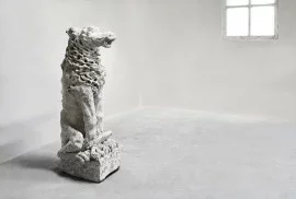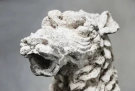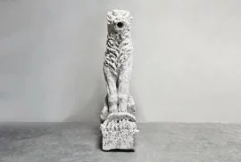 Deze antieke gayole is een traditioneel wachterbeeld uit Zuid-Frankrijk, vervaardigd uit massief natuursteen. Oorspronkelijk geplaatst bij ingangen van landgoederen en herenhuizen, dienden deze gestileerde leeuwenfiguren als symbool van bescherming en status.