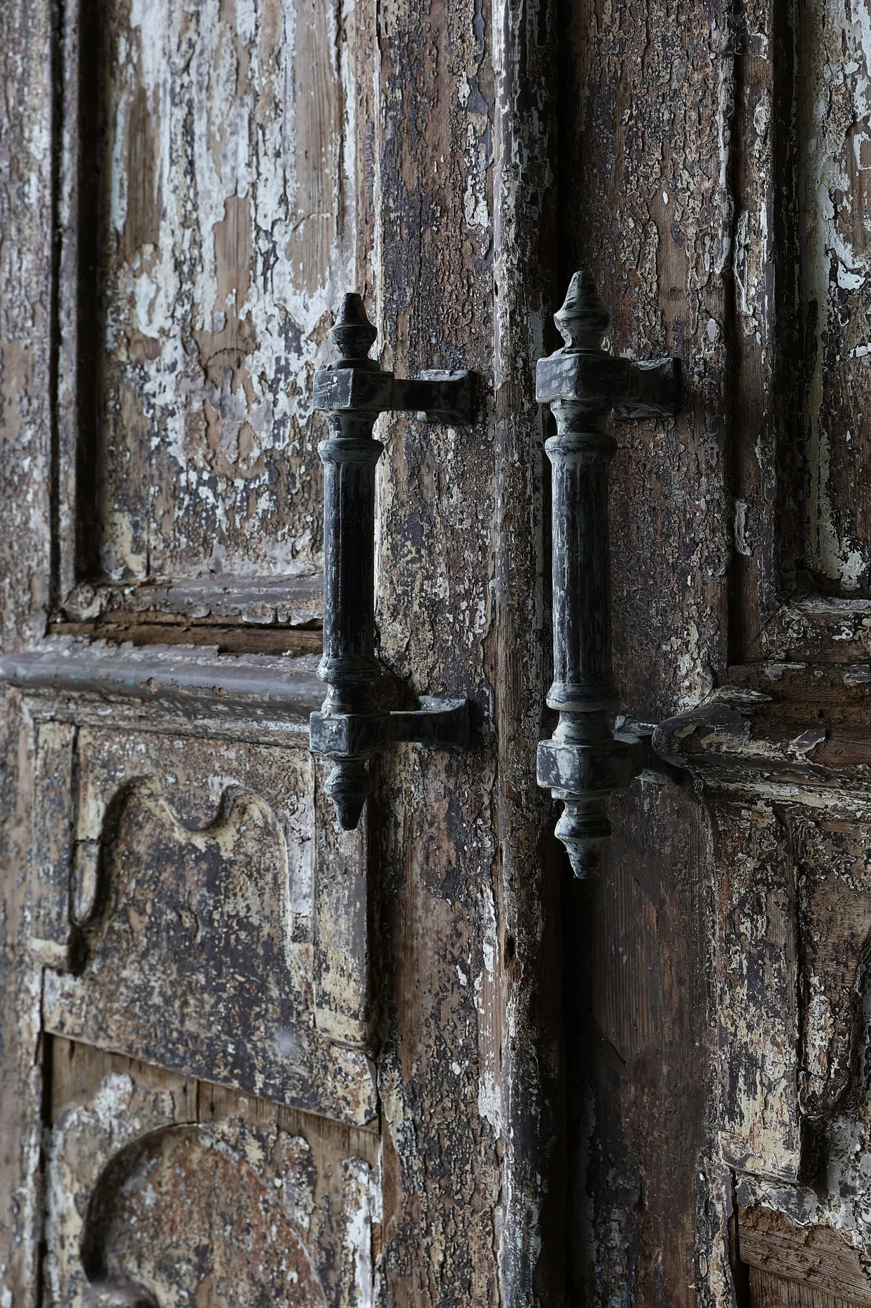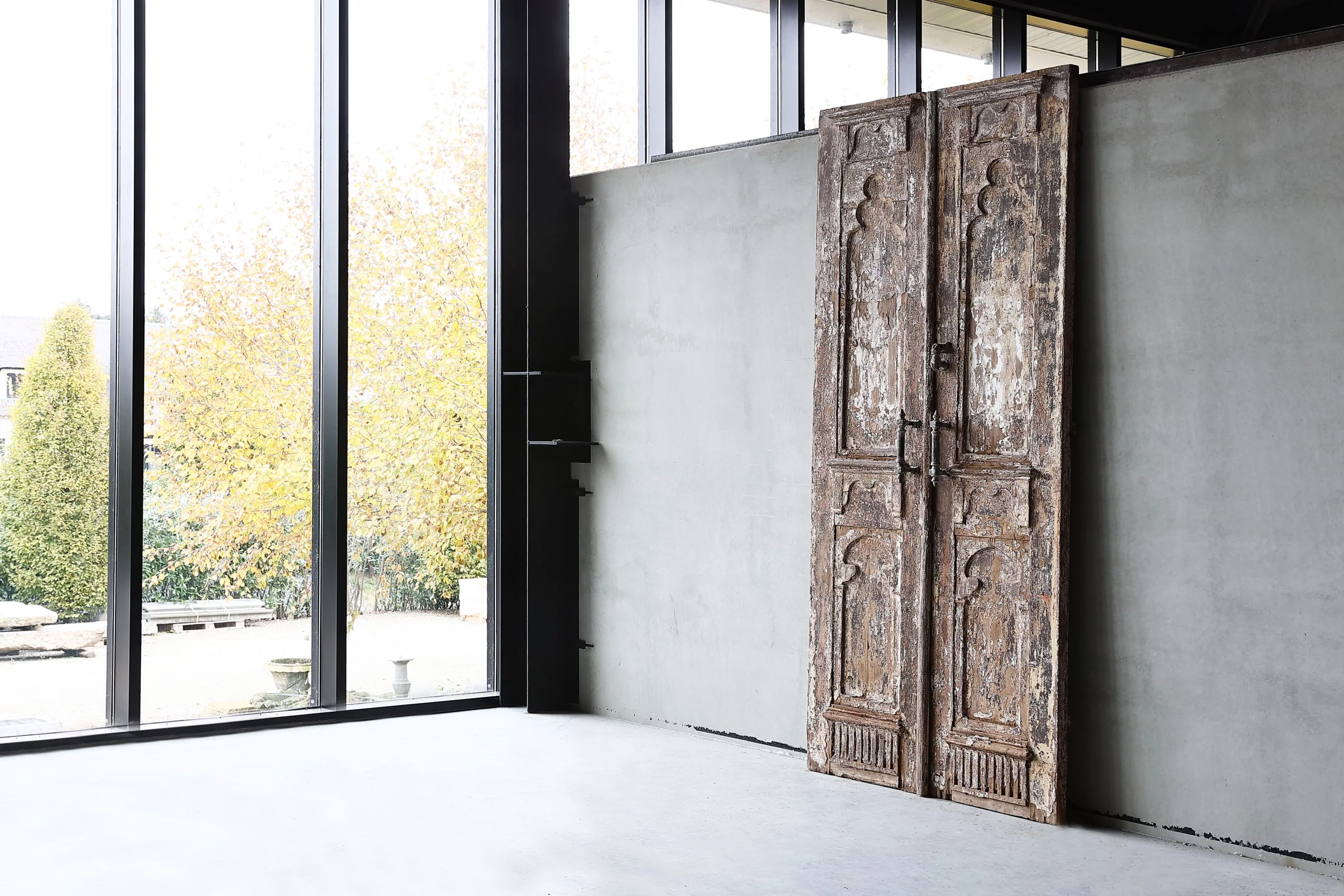 We hebben een prachtige authentieke set antieke Egyptische deuren van 100 jaar oud. Deze houten deuren zijn mooi gedecoreerd en hebben massieve gietijzeren handgrepen. Echte blikvangers die een zeer imposante indruk geven.