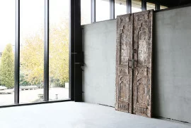 We hebben een prachtige authentieke set antieke Egyptische deuren van 100 jaar oud. Deze houten deuren zijn mooi gedecoreerd en hebben massieve gietijzeren handgrepen. Echte blikvangers die een zeer imposante indruk geven.
