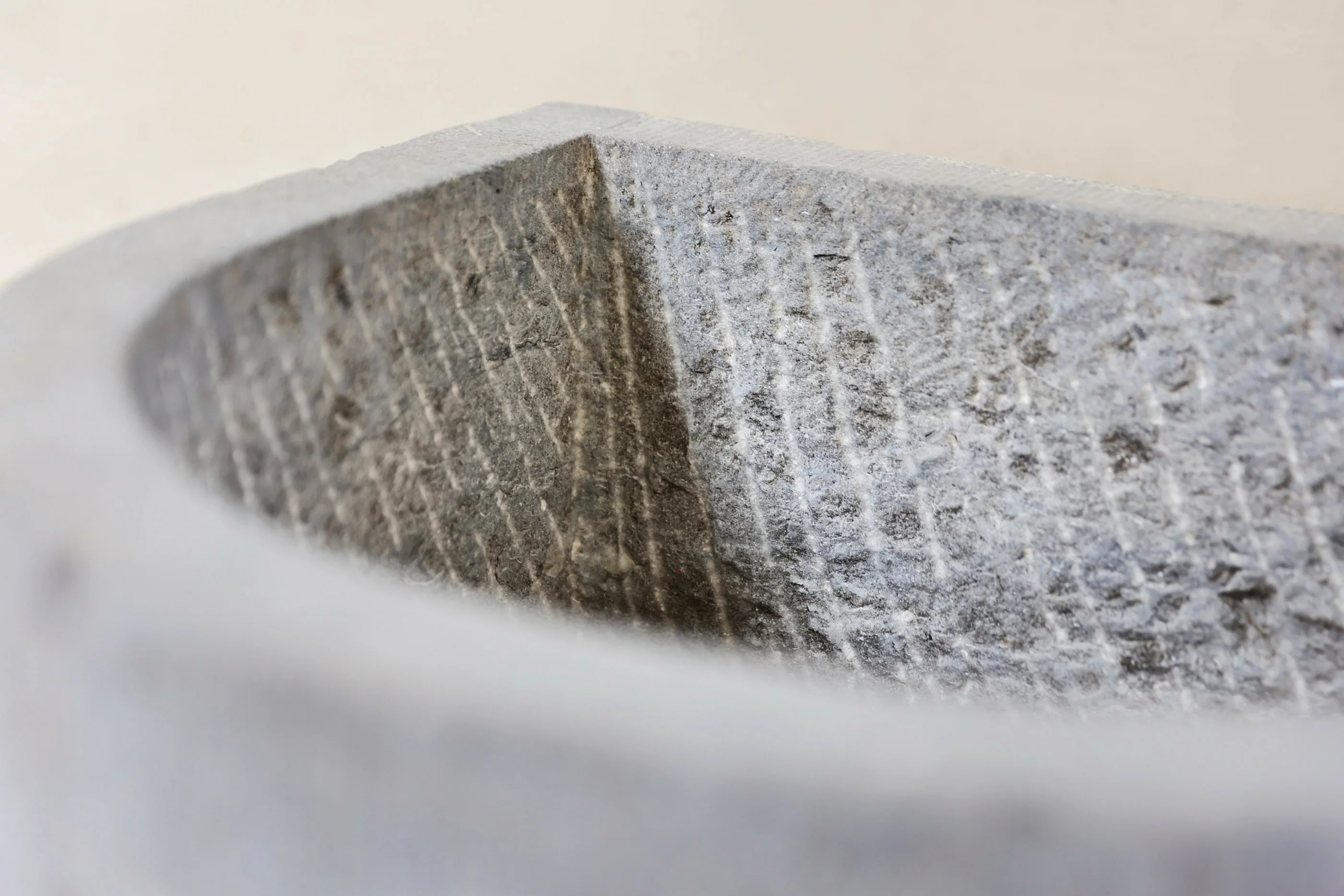 Belgisch hardsteen staat bekend om zijn subtiele grijstinten en fossiele insluitingen, die samen zorgen voor een unieke textuur. Deze wasbak ademt de sfeer van historische herenhuizen en stadsappartementen uit de 18e en 19e eeuw. De natuurlijke slijtage en het zachte kleurverloop maken elk stuk uniek en geven interieurs een warme, gelaagde uitstraling. Interieurontwerpers waarderen dit materiaal vanwege de veelzijdige toepasbaarheid: het combineert moeiteloos met hout, messing en moderne afwerkingen.