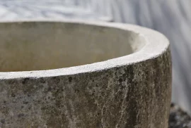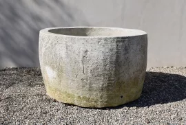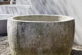 In de tuin vormt deze planter een prachtig rustpunt. Zijn tijdloze uitstraling combineert moeiteloos met zowel een klassieke landelijke tuin als een moderne, minimalistische buitenruimte. Door het gewicht en de natuurlijke textuur staat hij stevig en straalt hij duurzaamheid en kwaliteit uit — ideaal voor een sierlijke buxus, lavendel of een kleine olijfboom.