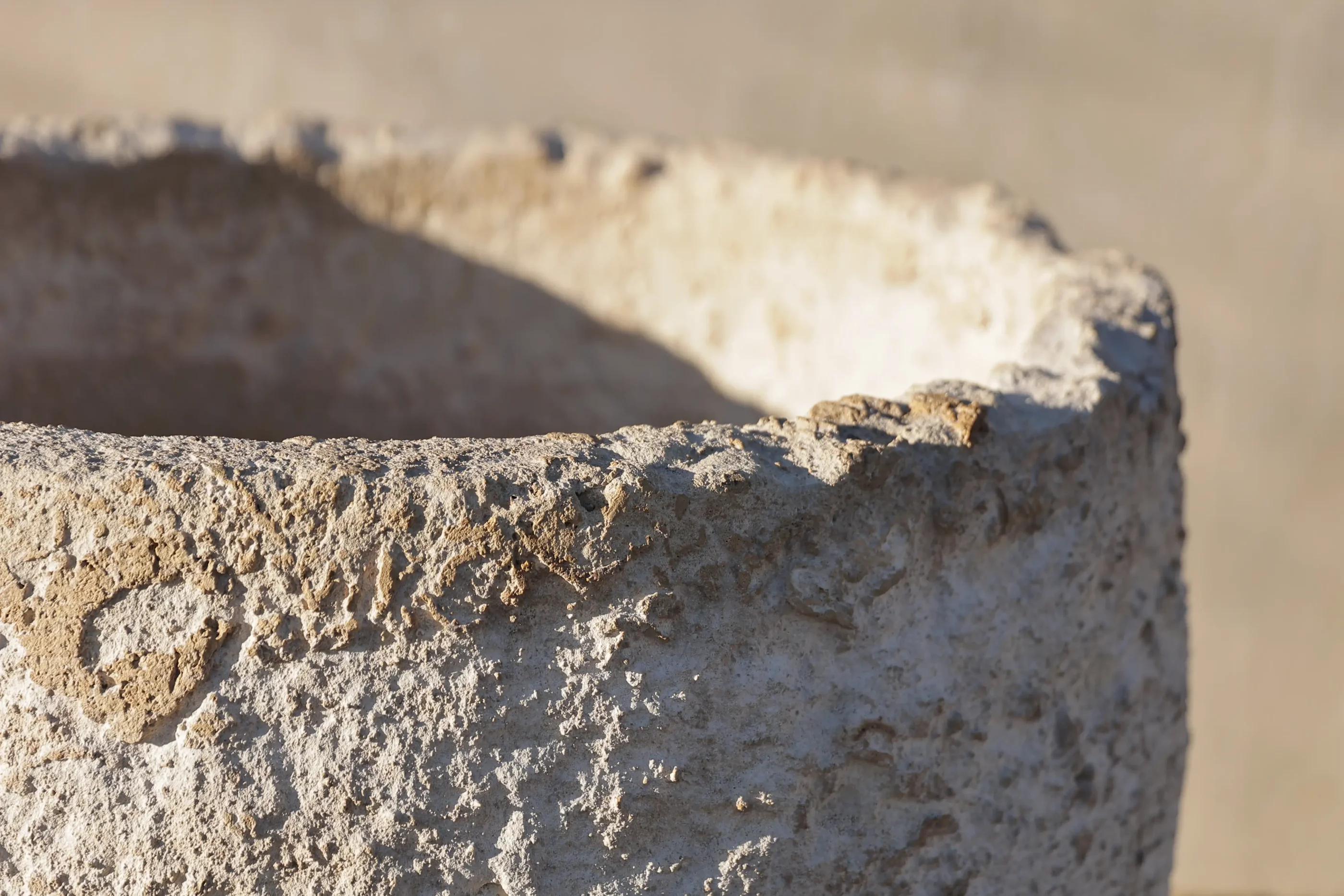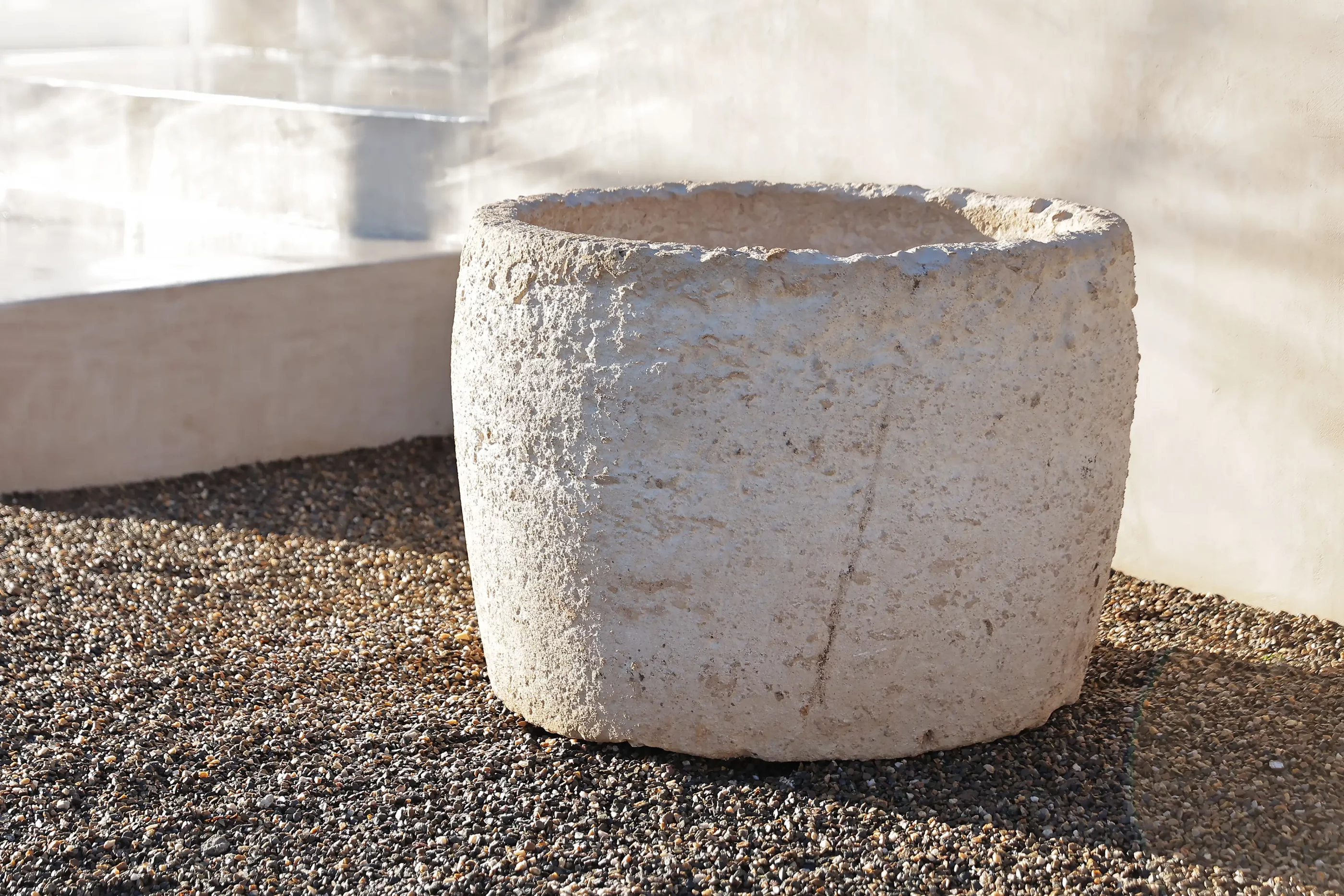 De pot is geschikt voor gebruik als decoratief element in de tuin, op een terras of in een binnenplaats, met of zonder beplanting. Door zijn sobere vorm en natuurlijke materiaal voegt hij structuur en karakter toe aan de buitenruimte zonder te overheersen.