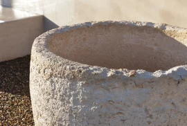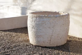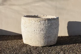 De pot is geschikt voor gebruik als decoratief element in de tuin, op een terras of in een binnenplaats, met of zonder beplanting. Door zijn sobere vorm en natuurlijke materiaal voegt hij structuur en karakter toe aan de buitenruimte zonder te overheersen.