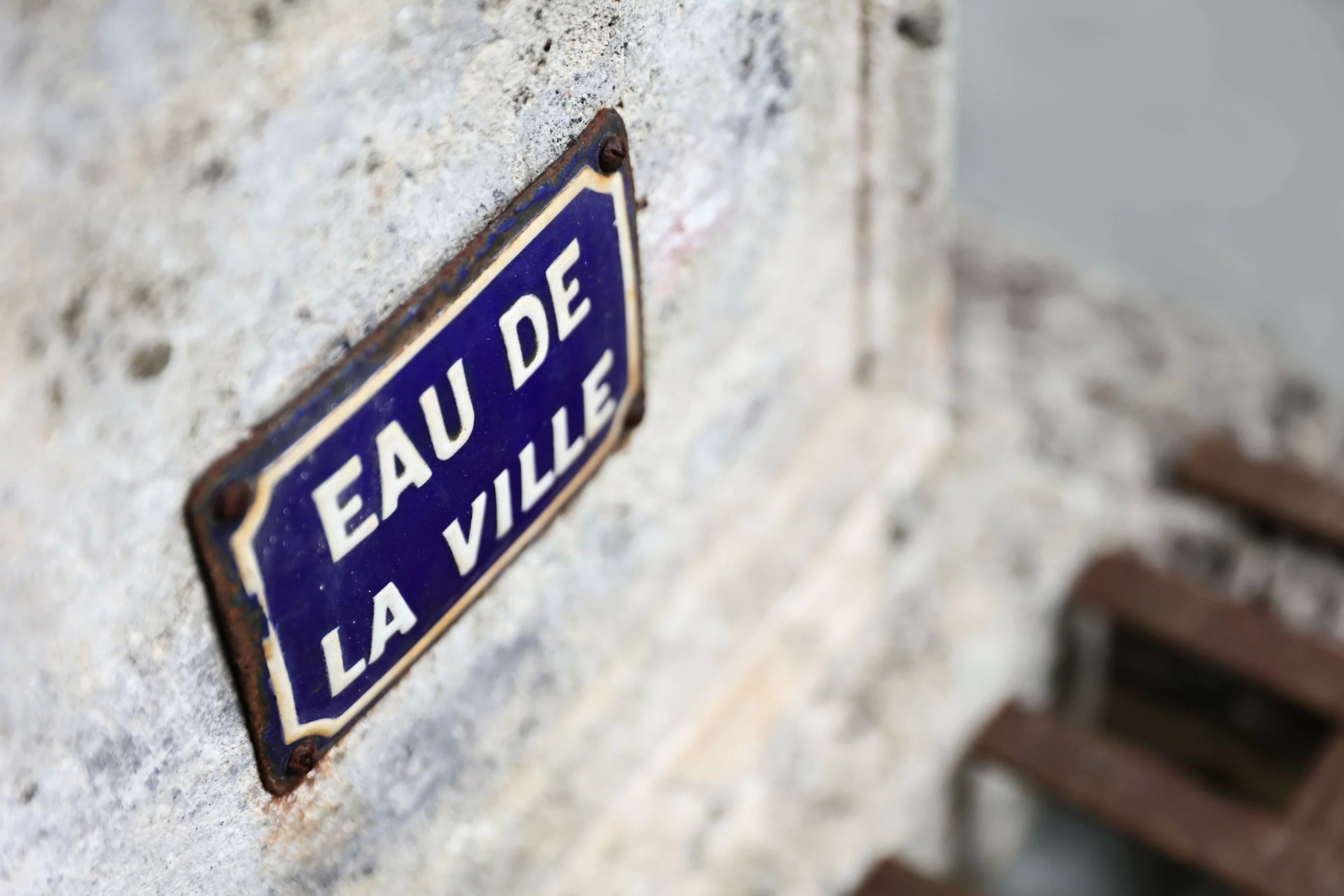Ja, het bordje “Eau de la Ville” hoort origineel bij dit object en blijft bevestigd.