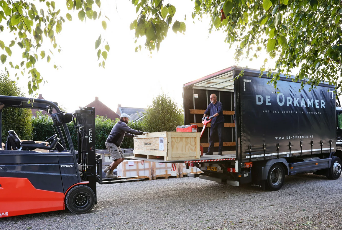 Binnen Nederland en België verzorgen wij onze leveringen van antieke schouwen, natuurstenen vloeren en terracotta tegels zoveel mogelijk in eigen beheer. Met onze eigen vrachtwagens bezorgen we door het hele land – van stadspand tot buitenverblijf. Afhankelijk van de situatie kiezen we het juiste voertuig: Veel van onze routes worden gereden door Sjors, onze vaste chauffeur die al meer dan 30 jaar bij De Opkamer werkt. Hoewel officieel met pensioen, rijdt hij nog steeds graag – en is bij veel van onze klanten een vertrouwd gezicht. Sjors is behulpzaam, zorgvuldig en denkt ter plaatse graag mee. Hij zorgt ervoor dat elke levering soepel en met een glimlach verloopt.