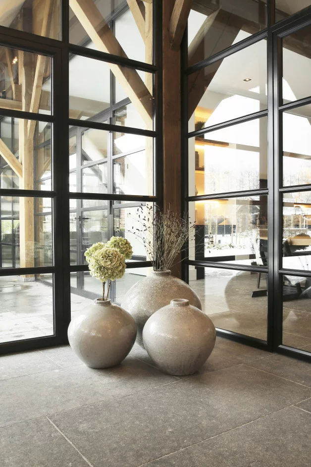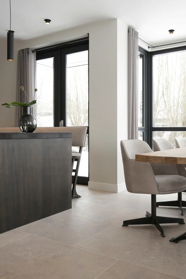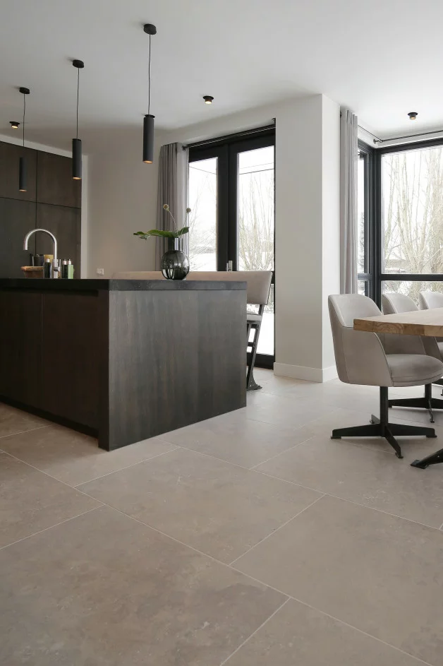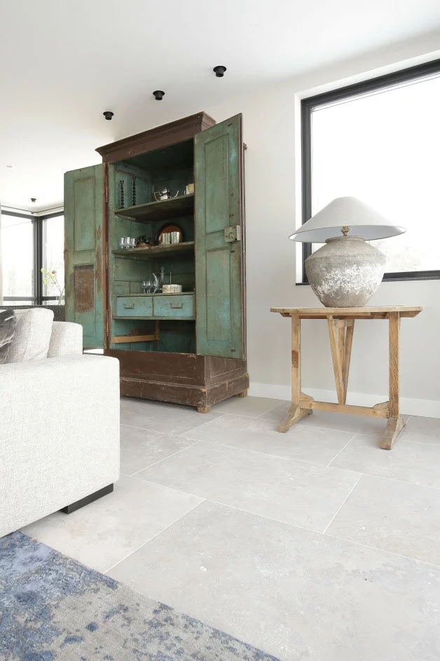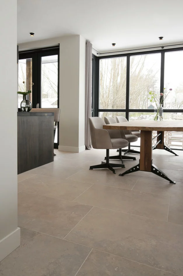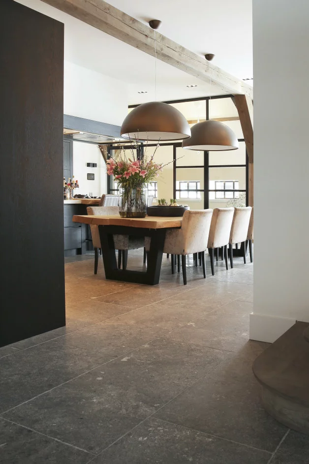 Op een winterse dag in februari heb ik bij een prachtige nieuwbouwboerderij foto's mogen maken van de italiaanse travertin vloer die wij geplaatst hebben. Een warme vloer met een beige/grijze kleurnuance. Deze vloer is in diverse afmetingen verkrijgbaar en geeft veel sfeer aan uw woning! Deze travertin vloer is ook te bekijken in onze showroom in Made! Naast de travertin vloer hebben wij ook een verouderde houten vloer geleverd en gelegd in het kantoor en in de slaapkamers. Deze houten vloer geeft warmte en uitstraling aan de woning!