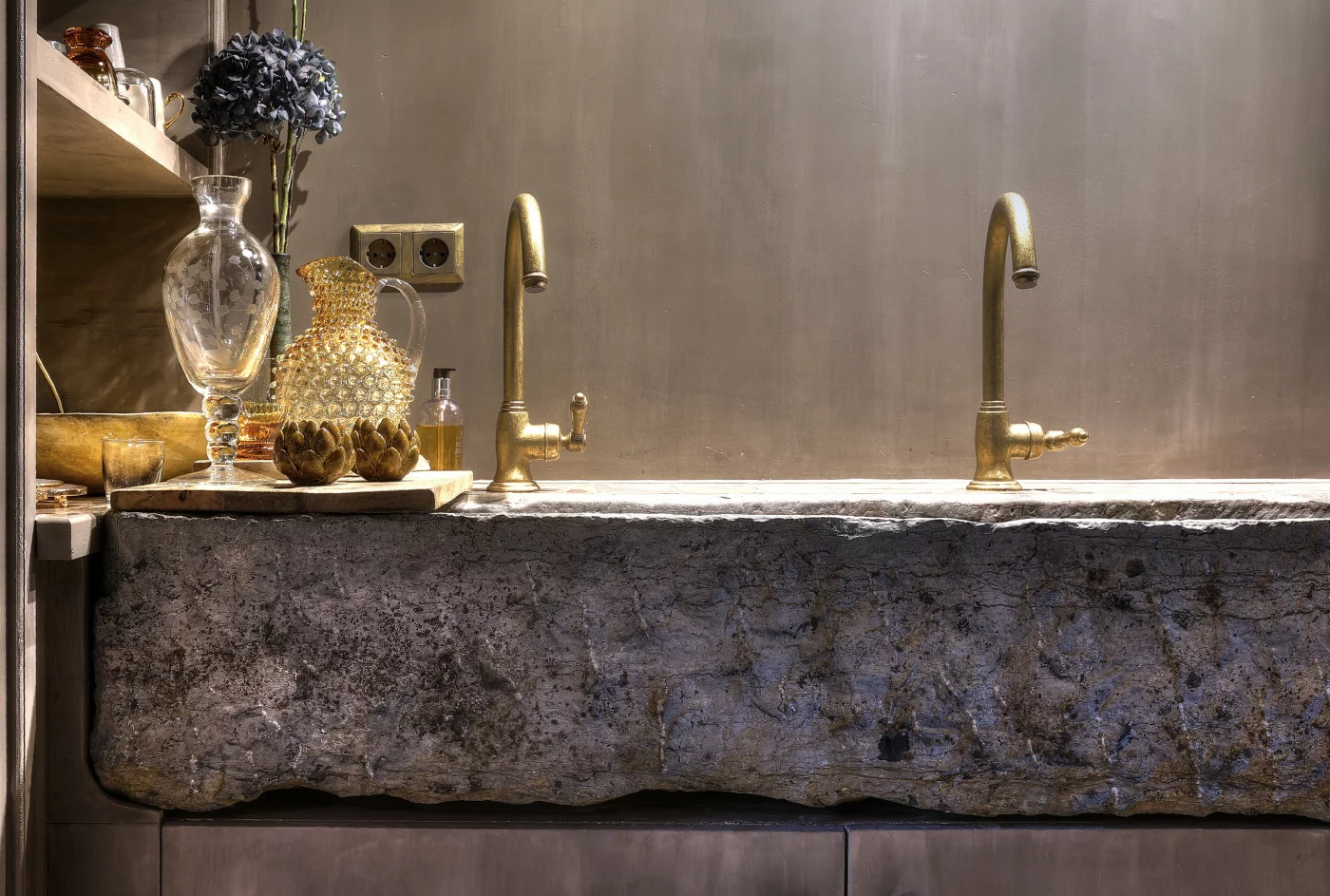 Bij deze prachtige sfeervolle woning hebben wij een antieke schouw geplaatst van Franse kalksteen met een mooie patinee die perfect bij het interieur past. Ook hebben we hier een antieke trog geplaatst in het aanrechtblad.