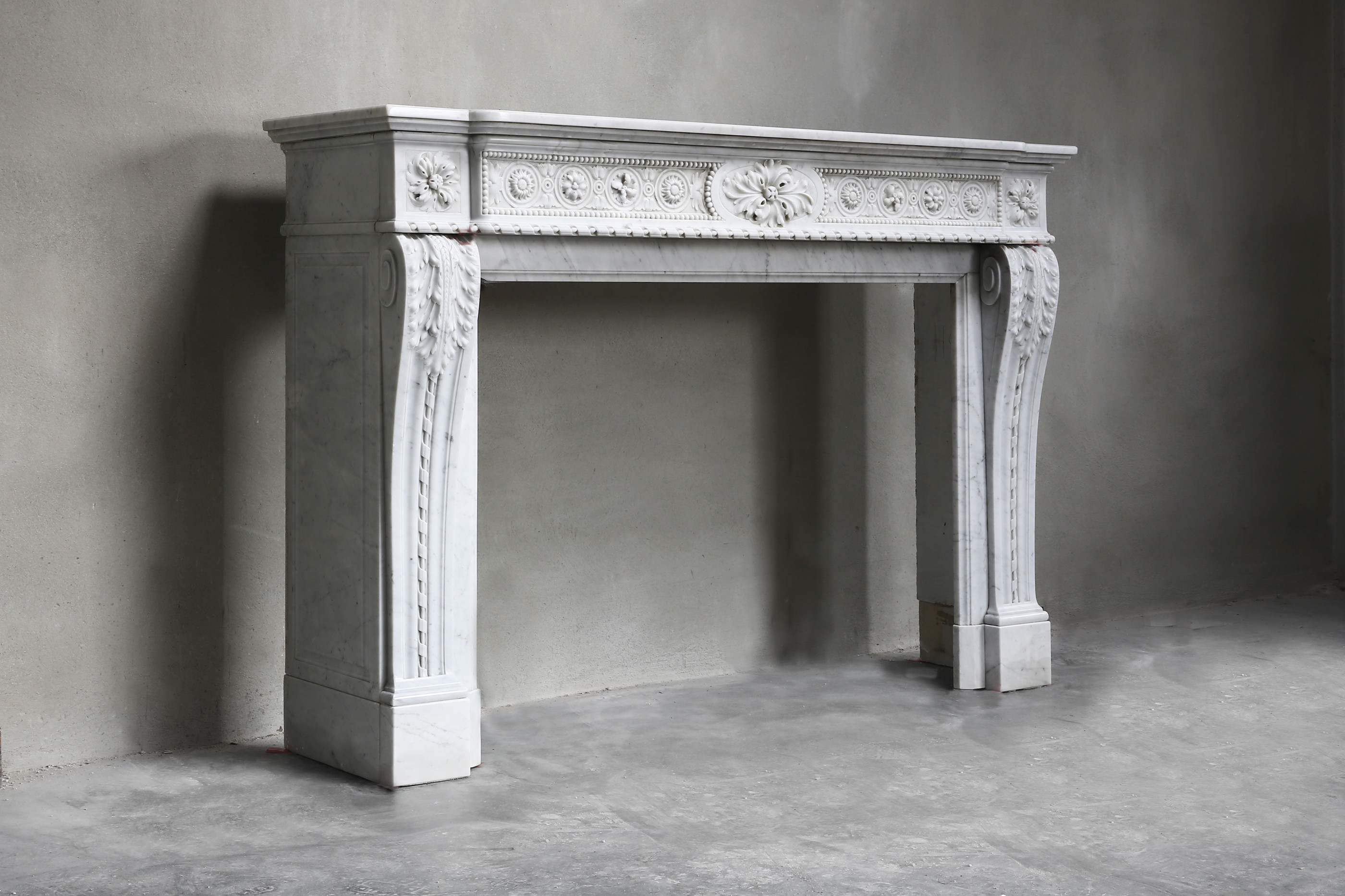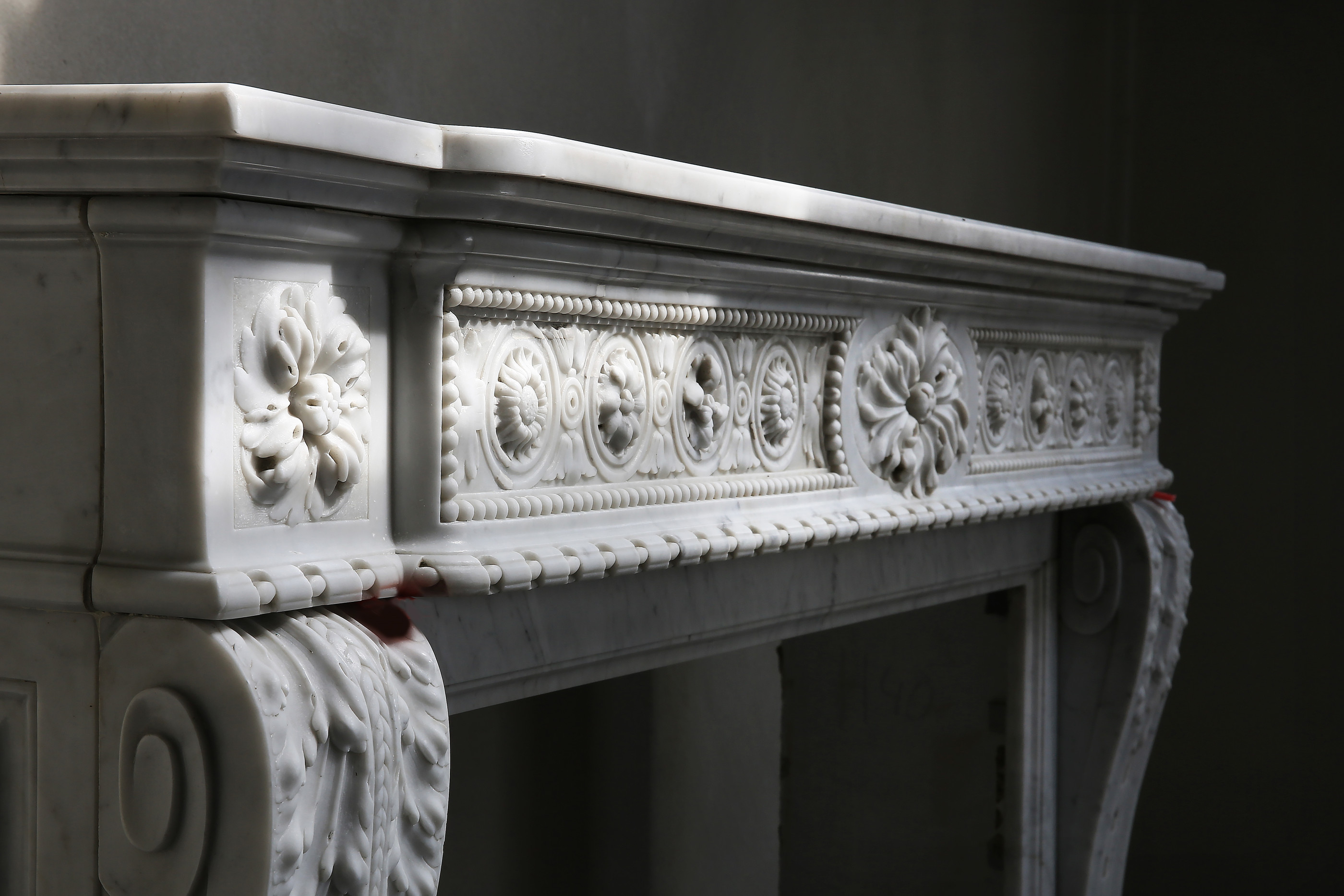 Antieke Carrara marmeren schouw Details