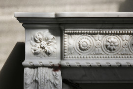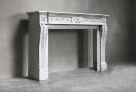 Bijzondere en exclusieve antieke schouw van Carrara marmer! Deze schouw in stijl van Louis XVI stamt uit de 18e eeuw. Het bovenblad is rijkelijk versierd met diverse elegante ornamenten. De benen zijn voorzien van acanthusbladeren en zijn licht gebogen. Een hele sierlijke en elegante schouw met een chique uitstraling.