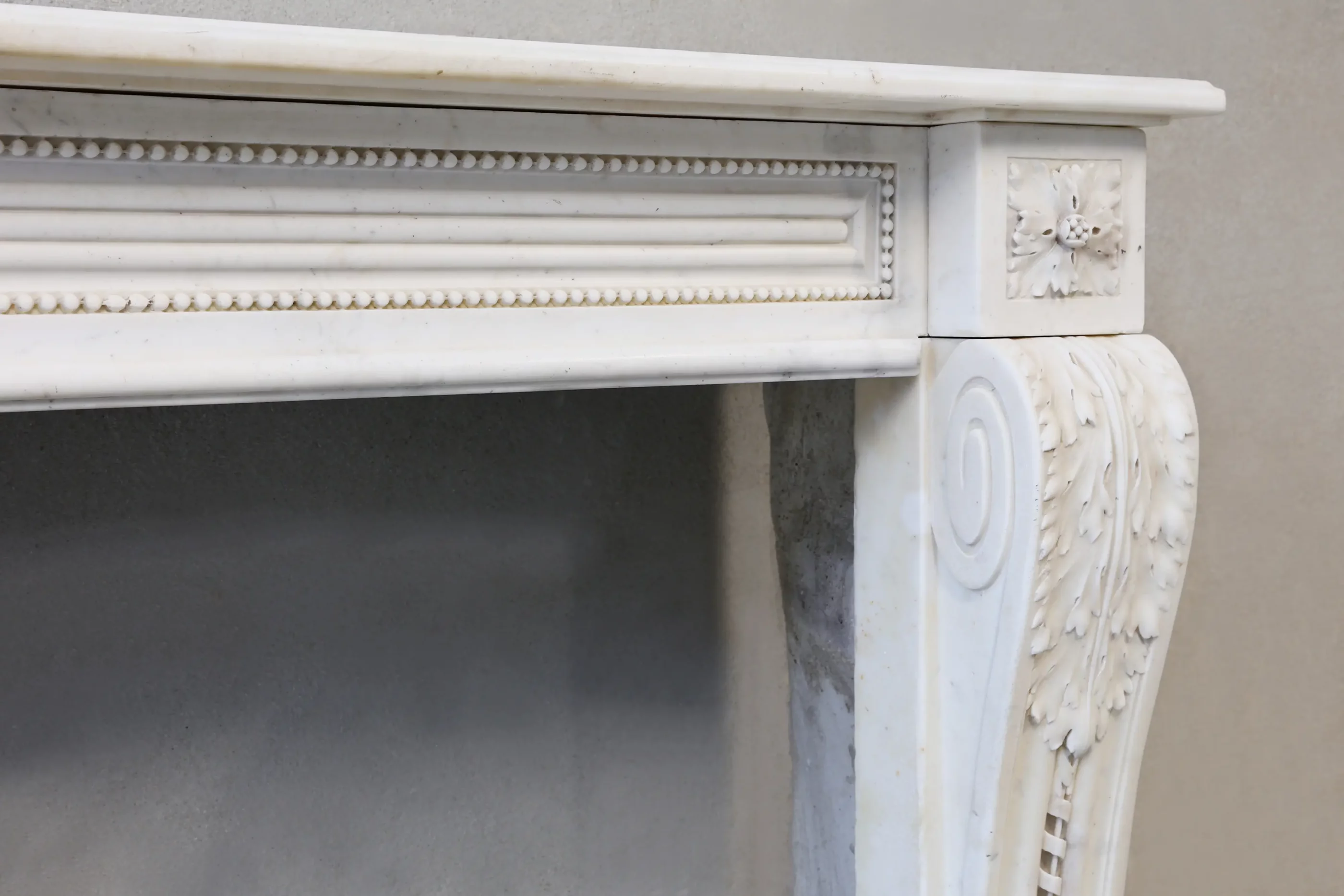 Deze elegante Louis XVI schouw van wit Carrara-marmer is een tijdloos en exclusief pronkstuk voor ieder interieur. Met zijn verfijnde neoclassicistische lijnen, acanthusbladeren en klassieke rozetten brengt deze marmeren schouw direct stijl en karakter in uw woning. Ideaal voor liefhebbers van antieke schouwen, marmeren haardmantels en een luxe interieur.