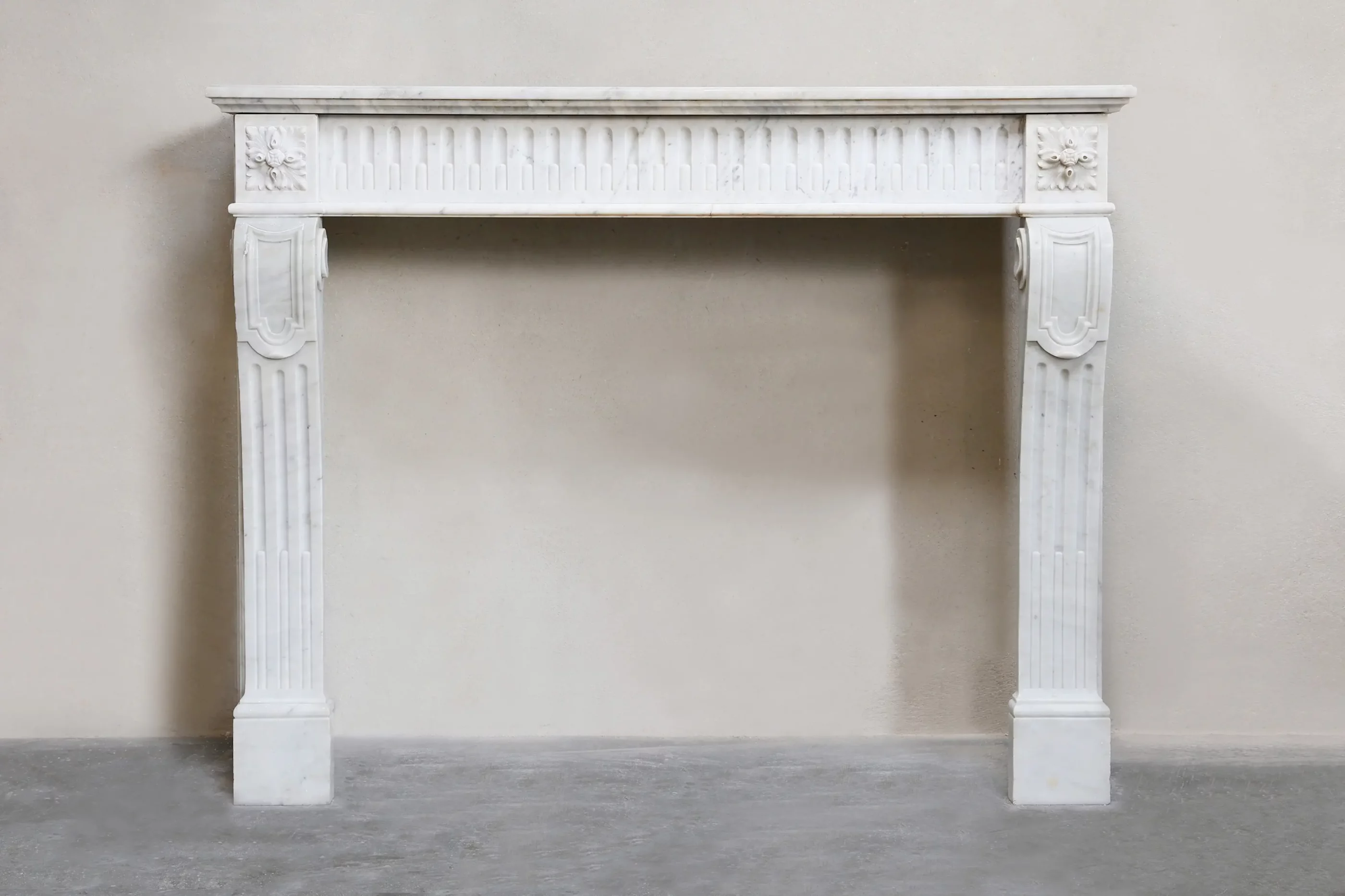 Het witte Carrara marmer staat bekend om zijn duurzaamheid en tijdloze uitstraling en maakt deze schouw geschikt voor zowel historische als hedendaagse interieurs. Dankzij de sobere elegantie en hoogwaardige afwerking vormt dit exemplaar een representatief en stijlvol architectonisch element in iedere ruimte.