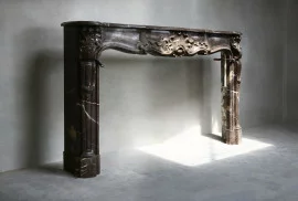 Exclusieve en antieke schouw van Marbre de Boulogne. Deze marmersoort komt uit Frankrijk en heeft een rustige uitstraling met lichte aders. De schouw is in stijl van Louis XV uit de 19e eeuw en is voorzien van 'trois coquilles' (drie schelpen) in het frontgedeelte. Een bijzonder mooie schouw, zowel van vorm als uitstraling en warme kleurstelling!