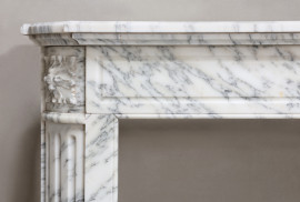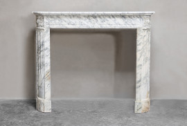 Deze antieke schouw van statuario marmer stamt uit de 19e eeuw en is in stijl van Louis XVI. Statuario marmer is één van de klassieke marmersoorten die oorspronkelijk veel toegepast werd in Italiaanse paleizen. De stijl van Louis XVI kenmerkt zich daar het gedetailleerde snijwerk en sierlijke lijnen en cannelures op de benen. Een prachtig meubelstuk voor elk interieur.