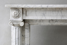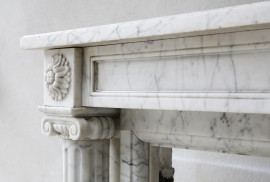 Mooie antieke schouw van Carrara marmer uit de 19e eeuw! Deze schouw is in stijl van Louis XVI en komt uit Parijs. De schouw is voorzien van charmante ornamenten en versieringen en de benen zijn voorzien van cannelures. Een prachtig model schouw die goed past binnen een modern of klassiek interieur.