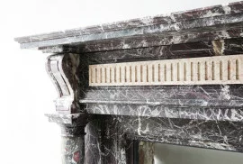 Exclusieve antieke marmeren schouw met pilaren uit de 19e eeuw! Een prachtige mantel binnen onze collectie, voorzien van mooie belijningen en ornamenten, in stijl van Louis XVI. De marmersoort is Levanto marmer en komt oorspronkelijk uit Italië. Wij hebben deze mooie mantel uit een oud pand in Brussel gehaald.