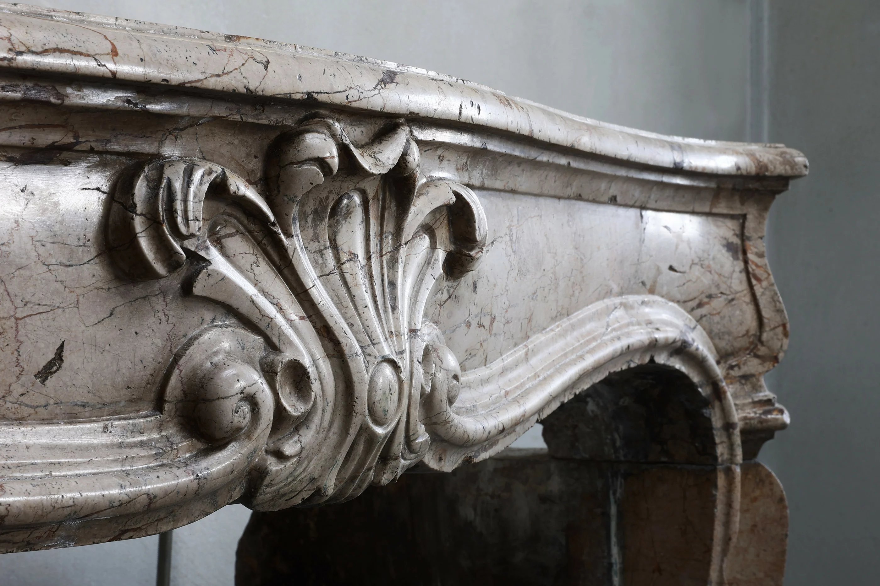 Prachtige exclusieve marmeren schouw uit de 19e eeuw. Deze schouw is bijzonder om zijn marmersoort en goede verhoudingen. De schelp in het midden, de mooie belijningen en warme kleurstelling zorgen voor sfeer en allure. De oorsprong van deze schouw ligt in het hart van Parijs. Wij hebben deze uit een mooi appartement gehaald.