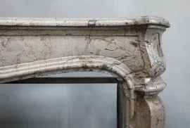Prachtige exclusieve marmeren schouw uit de 19e eeuw. Deze schouw is bijzonder om zijn marmersoort en goede verhoudingen. De schelp in het midden, de mooie belijningen en warme kleurstelling zorgen voor sfeer en allure. De oorsprong van deze schouw ligt in het hart van Parijs. Wij hebben deze uit een mooi appartement gehaald.