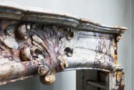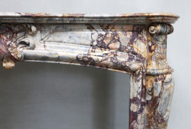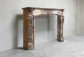 Prachtige antieke schouw van Breche de Medou marmer in stijl van Regence Pompadour. Een schouw van een bijzondere kleurrijke marmersoort uit Frankrijk! Deze schouw stamt uit 1870 - 1880. Een juweeltje voor elk interieur!