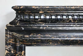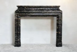 Prachtige unieke schouw van Portoro marmer. Portoro marmer heeft z'n oorsprong in Italië en is een hele mooie warme marmersoort van donkerbruin/zwart met prachtige gevlamde aders! Deze antieke schouw stamt uit de 19e eeuw en is in stijl van Louis XIII. Een zeer mooie schouw met cannelures in het frontgedeelte en mooie belijningen.