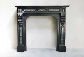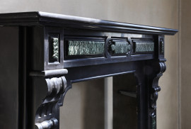 Antieke marmeren schouw van Noir de mazy marmer en groene marmer. Een compacte mantel uit de 19e eeuw met mooie versieringen en ornamenten in stijl van Louis XVI.