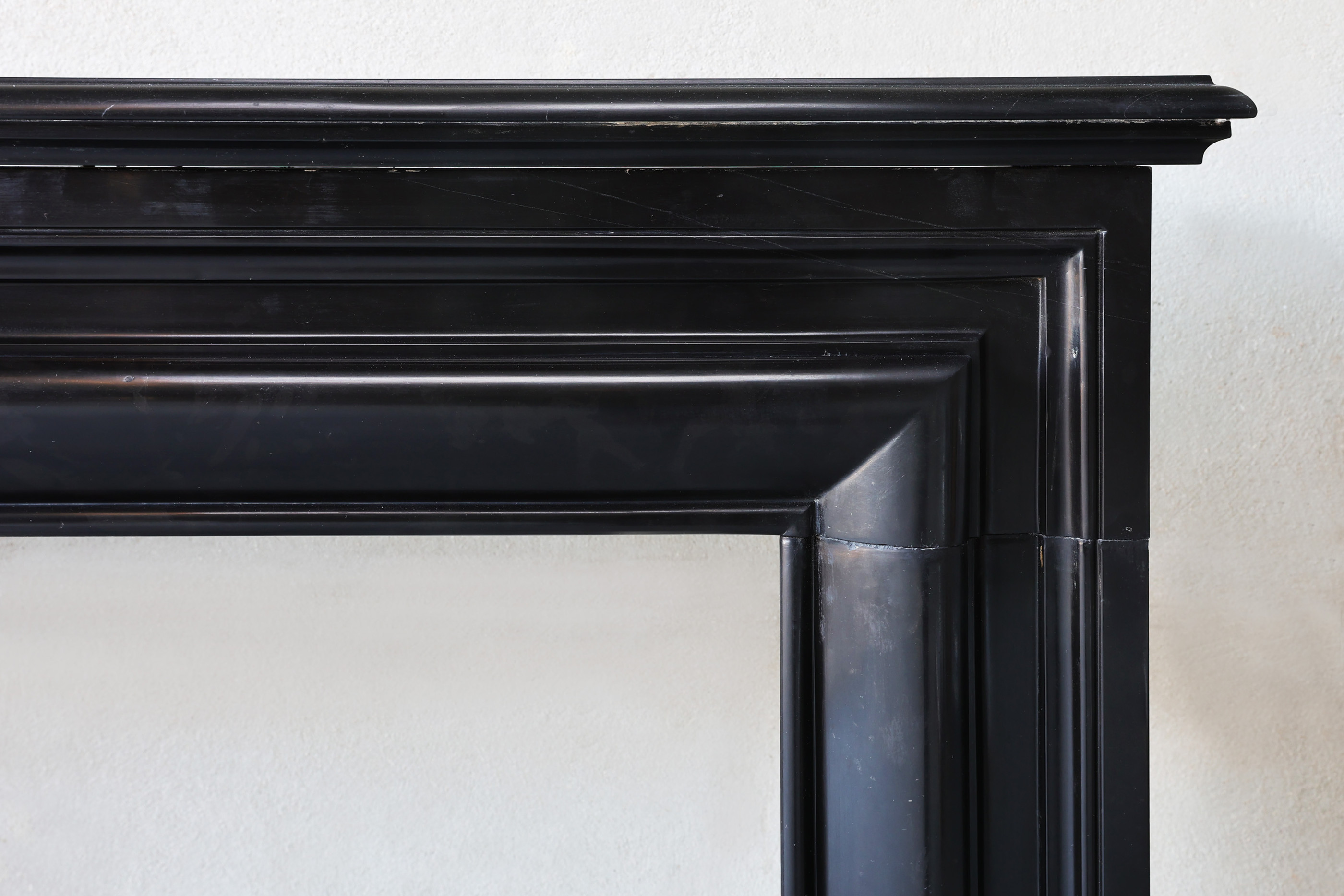 Zeer mooie antieke schouw van het 'zwarte goud' Noir de Mazy marmer. Noir de Mazy schouwen zijn één van de meest populaire stijlen van open haarden. De groeven in België waar deze marmer vandaan komt zijn nu gesloten. Deze schouw is in stijl van Louis XVI en komt uit de 19e eeuw. Een prachtige schouw die tijdloos is en een meerwaarde is voor elk interieur.