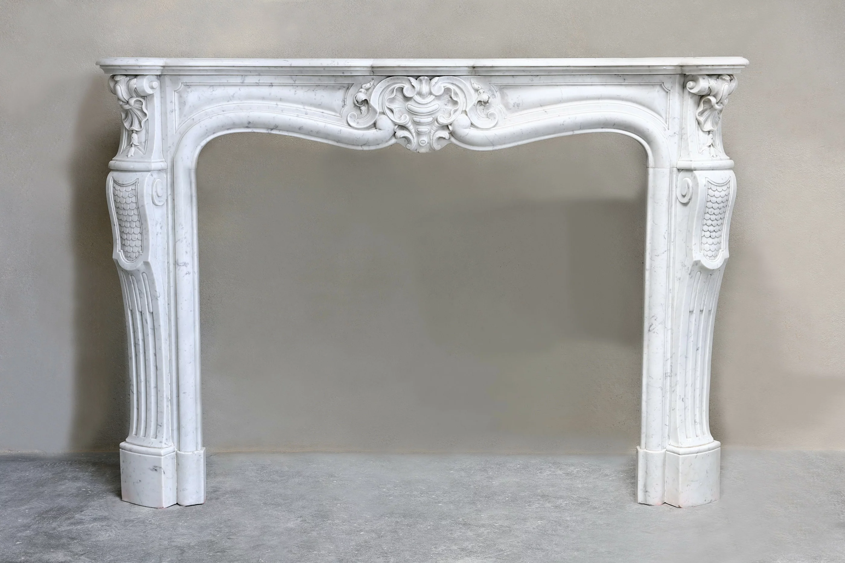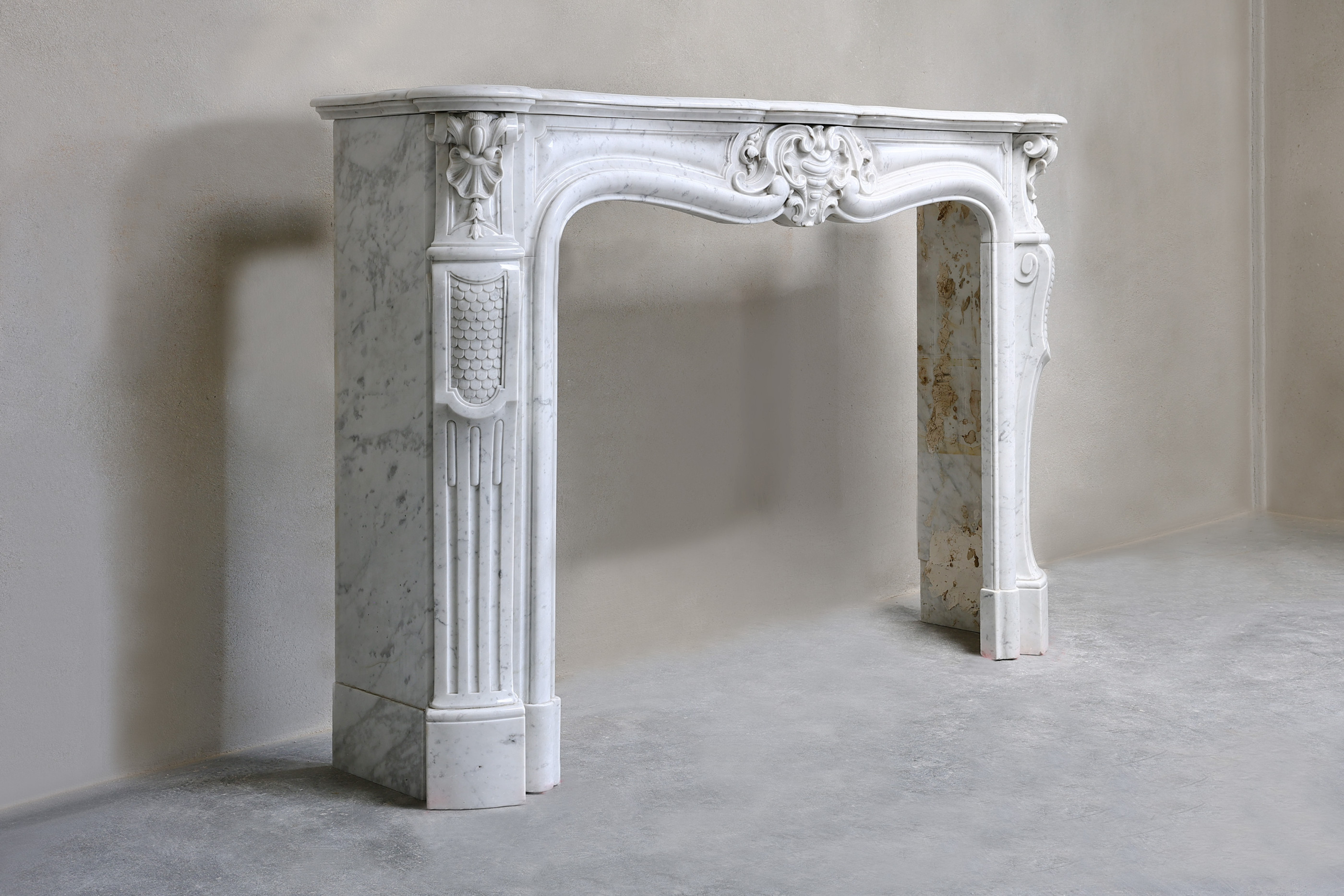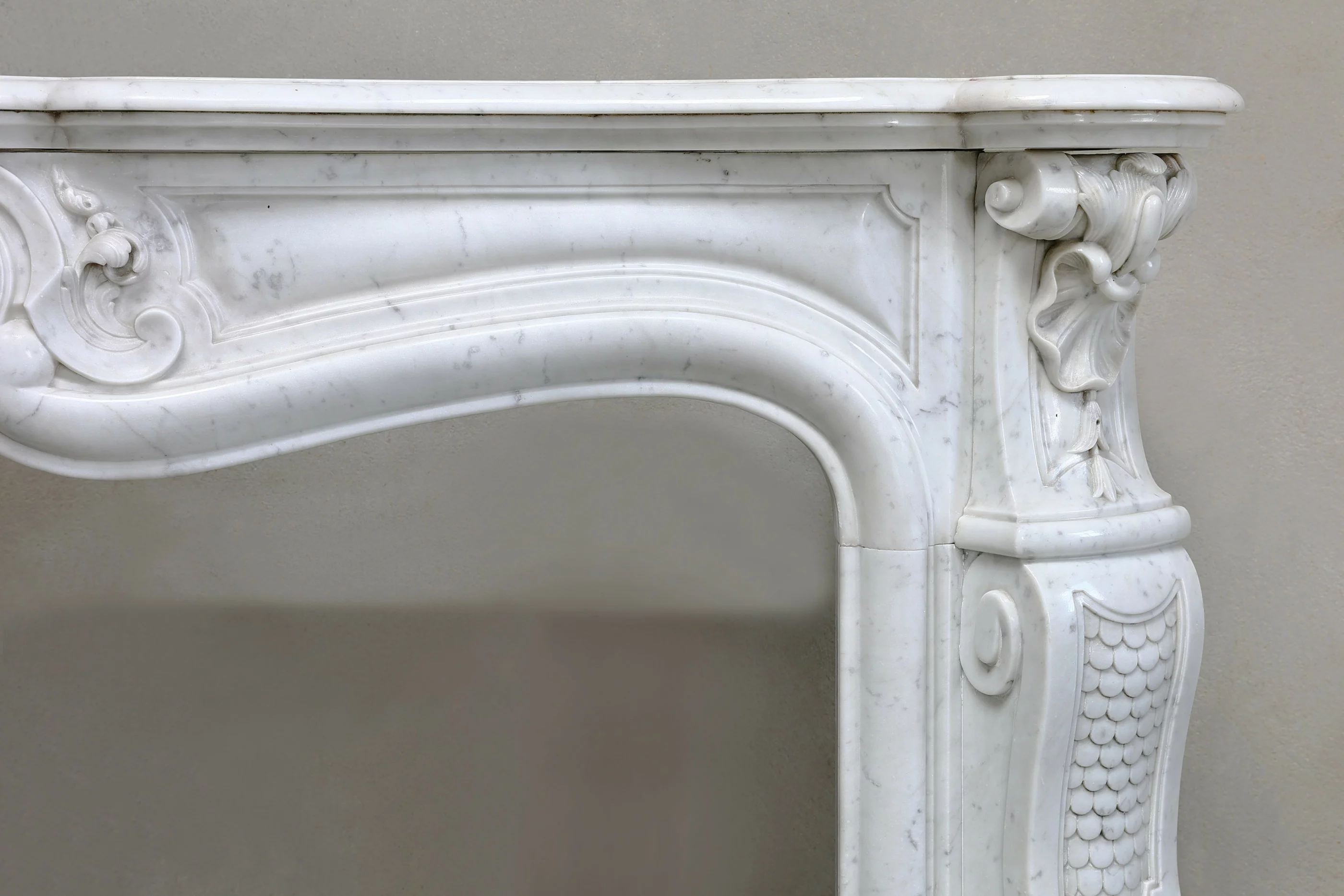 Zeer mooie schouw van wit Carrara marmer uit de 19e eeuw. Carrara marmer komt oorspronkelijk uit Italië, uit het plaatsje Carrara. Deze stad wordt ook wel de stad van het marmer genoemd omdat rondom Carrara heel wat marmergroeven liggen waar al eeuwenlang marmer gewonnen wordt. Deze open haard is in stijl van Louis XV en heeft prachtige ornamenten in het frontgedeelte en op de benen. Een elegante mantel met rechte benen met een chique uitstraling.