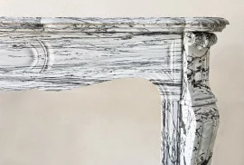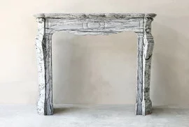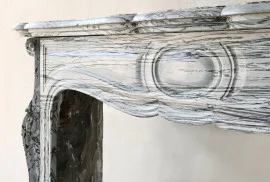 Hele chique antieke schouw van Bleu fleuri marmer. Deze open haard is in Pompadour stijl en dateert uit de 19e eeuw. Een mooie mantel qua formaat en uitstraling! Wij hebben veel antieke schouwen op voorraad en kunnen ook snel leveren. Vraag naar de mogelijkheden bij De Opkamer, tel: 0162 681522 of mail naar: info@de-opkamer.nl.
