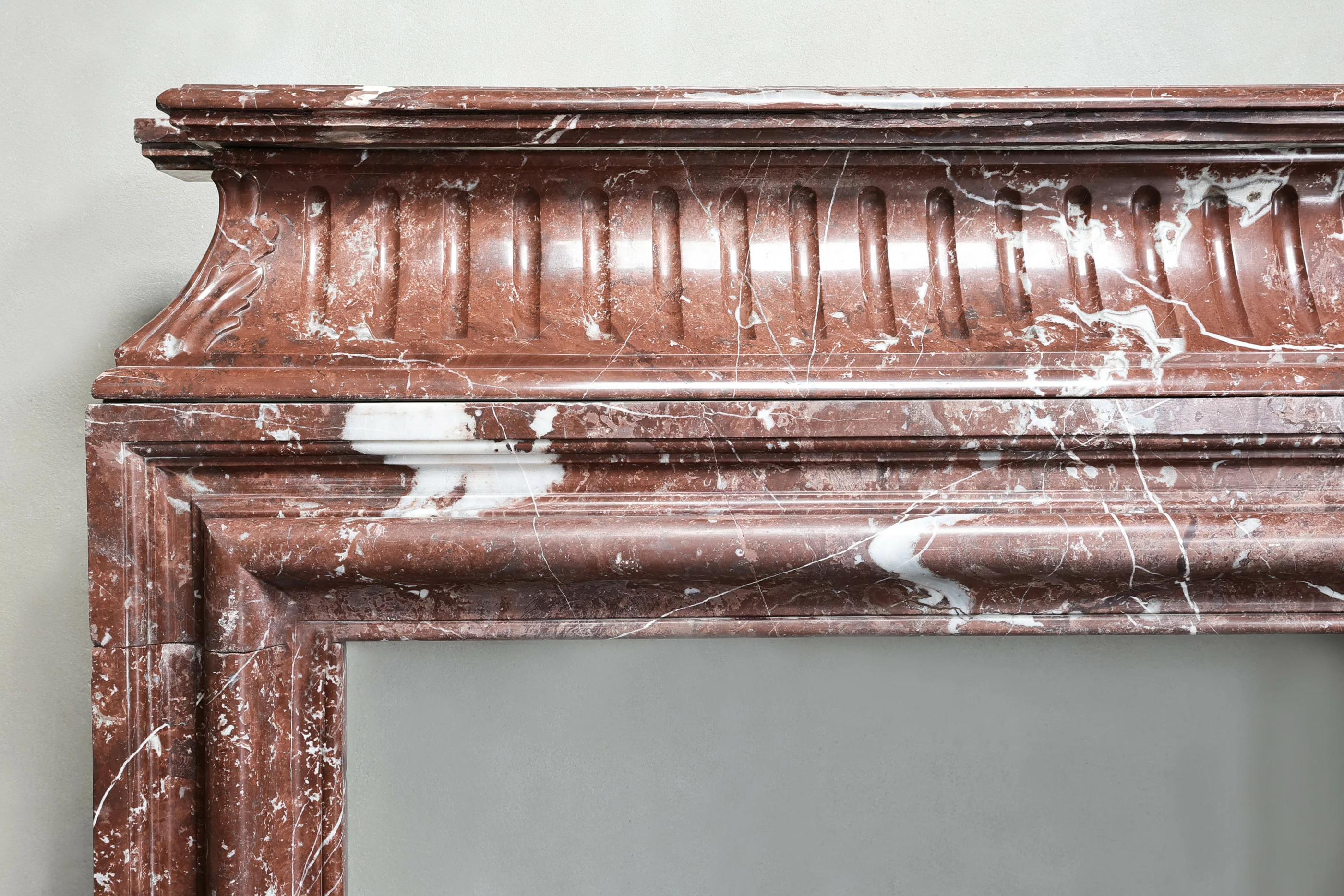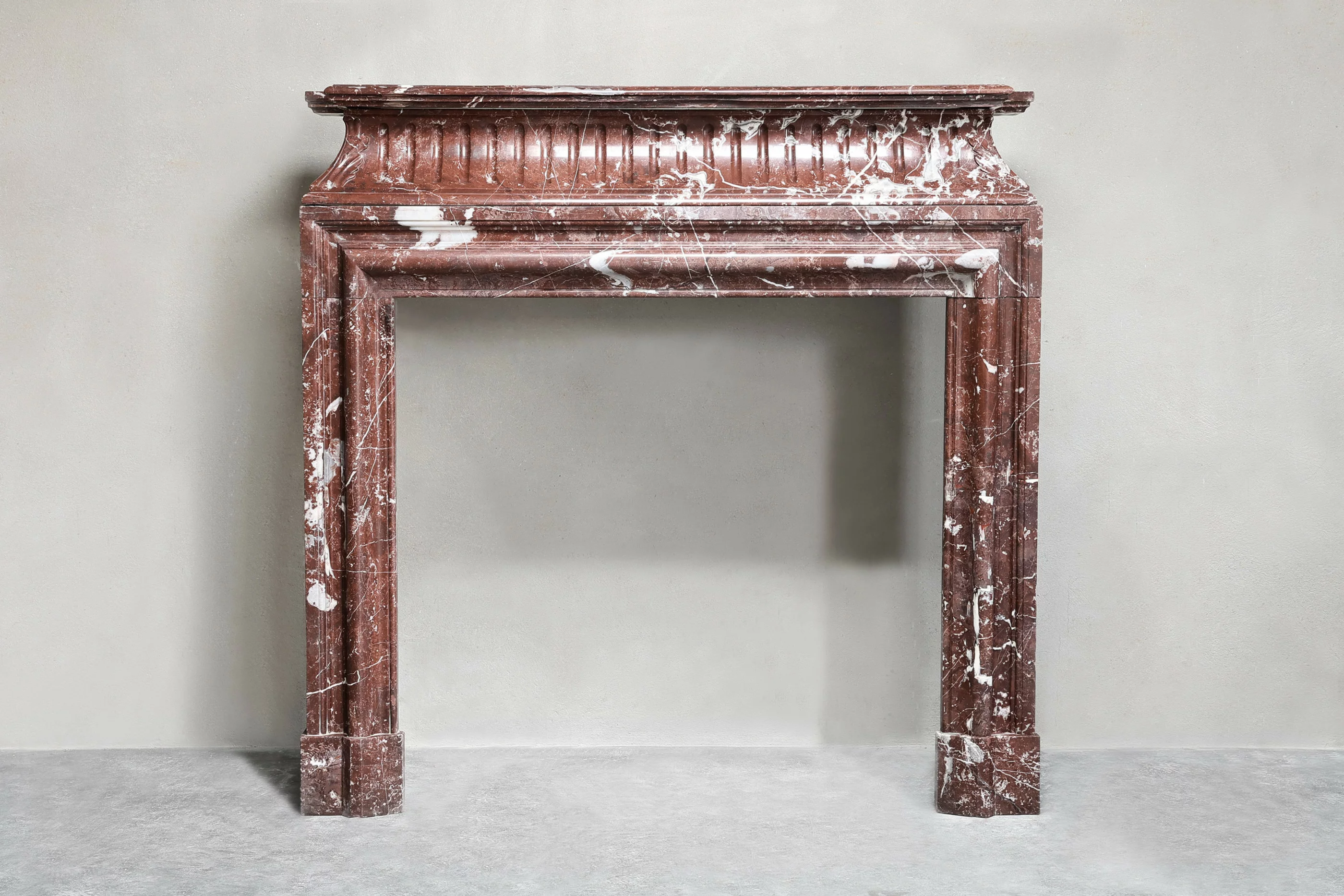 Prachtige antieke schouw van de marmersoort Rouge Royal. Deze warme kleurstelling zorgt voor veel sfeer en uitstraling! Een unieke open haard binnen onze collectie uit de 19e eeuw in stijl van Louis XVI.