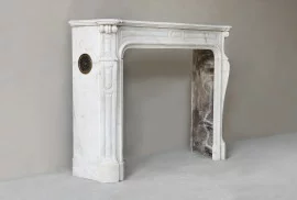 De schouw is uitgevoerd in Carrara-marmer, een natuursteen die al eeuwenlang wordt toegepast in Europese architectuur. De Pompadour-stijl plaatst dit object binnen de Franse interieurarchitectuur van de 19e eeuw, met verfijnde profileringen en evenwichtige ornamentiek.