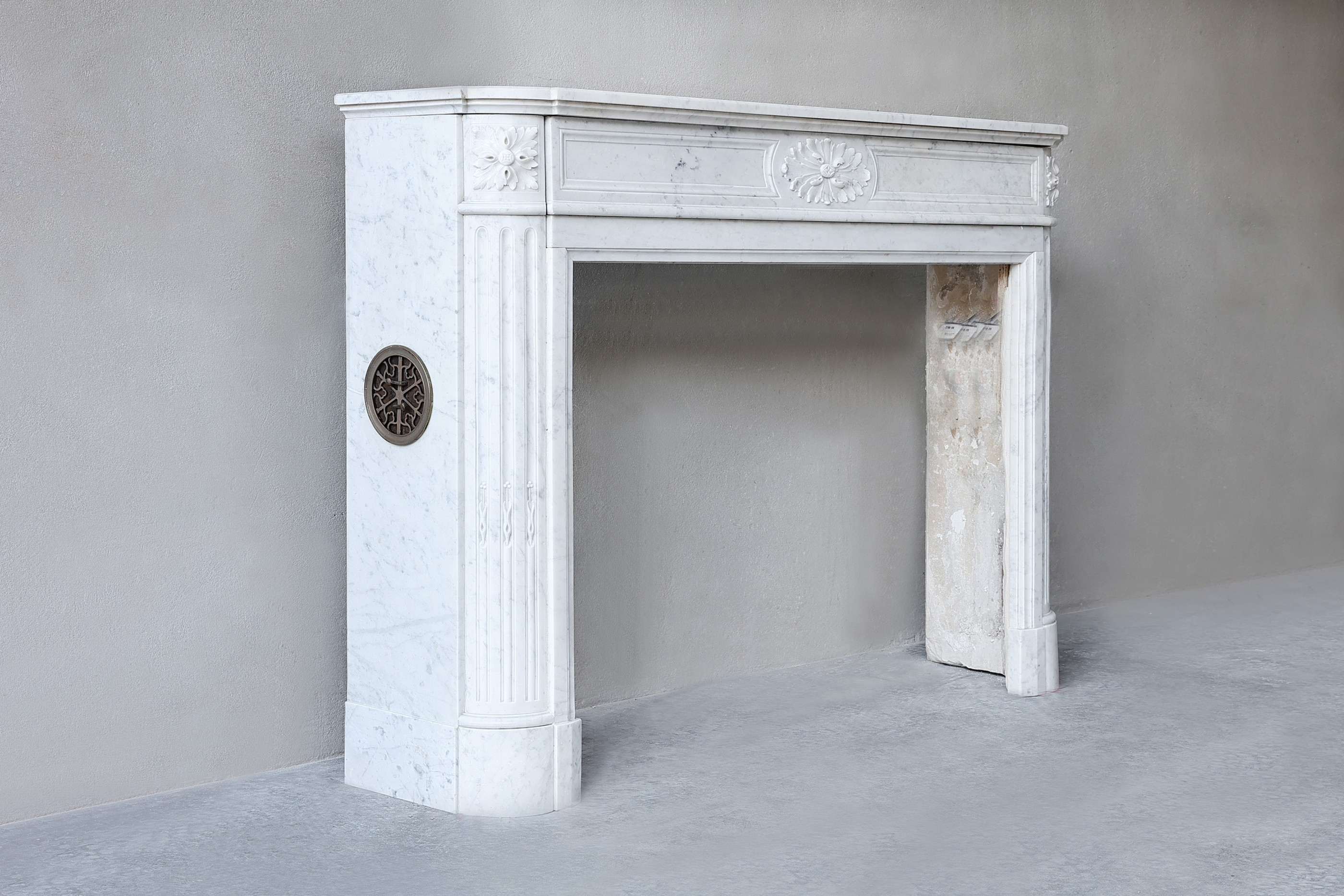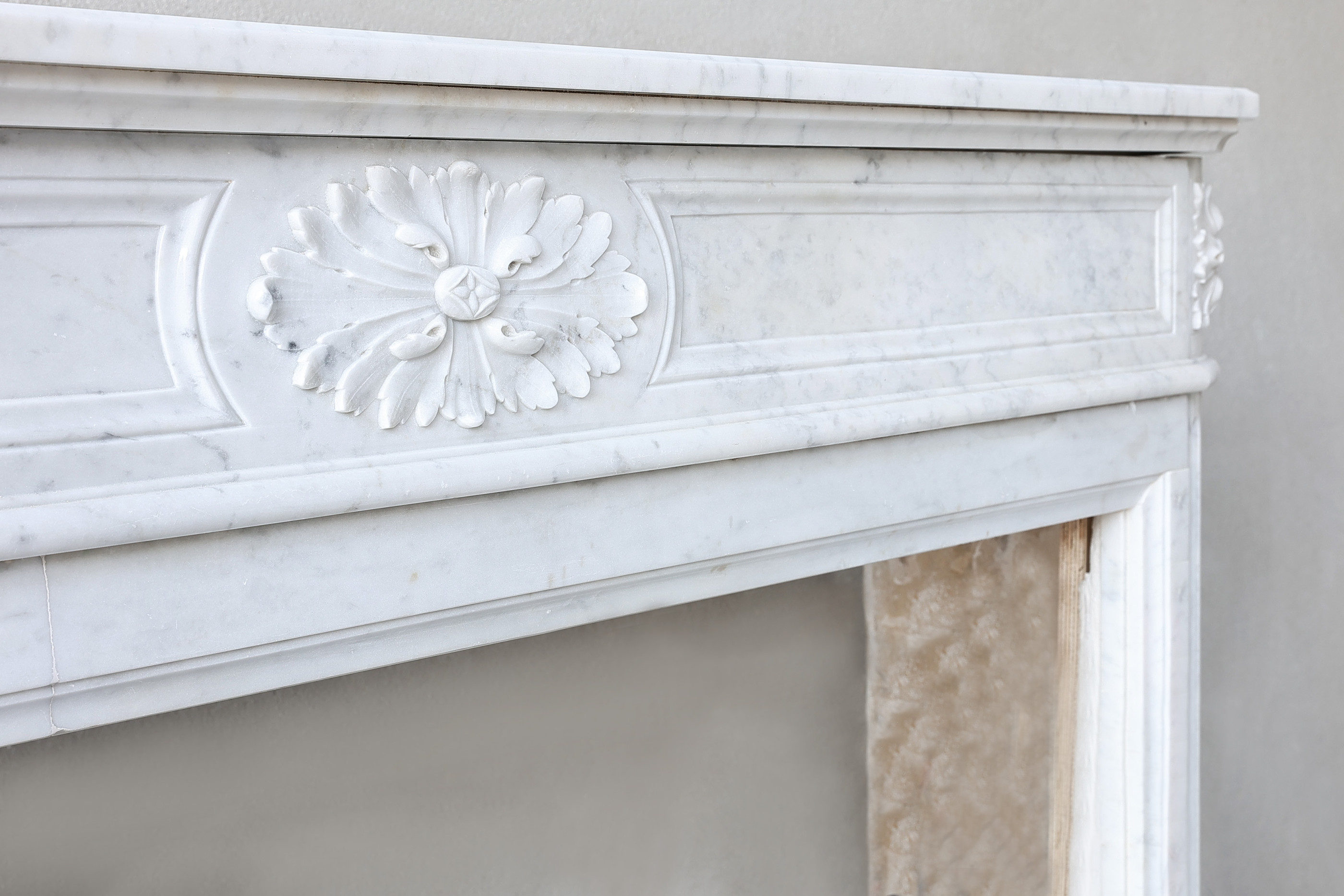 Deze unieke antieke marmer schouw uit de 19e eeuw is een voorbeeld van de verfijnde Louis XVI-stijl. Kenmerkend zijn de elegante, symmetrische demi-lune benen, die het ontwerp een zacht, klassiek karakter geven. Gemaakt van prachtig Carrara-marmer, staat deze schouw bekend om zijn zuiverheid en tijdloze uitstraling. Met een breedte van 139 cm en een hoogte van 105 cm past deze klassieke marmeren schouw perfect in verschillende woonstijlen. Of u het gebruikt als een decoratief middelpunt of als een functionele open haard, deze antieke schouwmantel voegt Parijse elegantie toe aan uw woning.