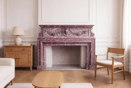 Prachtige, authentieke schouw in Louis XIII-stijl, vervaardigd uit het zeldzame Fleur de Pêche marmer. Deze elegante haardomlijsting dateert uit het begin van de 19e eeuw en is met zorg bewaard gebleven. Een stijlvol en tijdloos stuk, perfect om karakter en klasse toe te voegen aan elk interieur. Soortgelijke schouwen zijn te vinden in Grand Escalier Opera Garnier en in het Louvre.