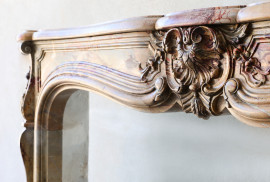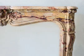 De verfijnde coquille op het linteel is een knipoog naar de Rococo-stijl en brengt Franse elegantie in elk klassiek of modern interieur. De natuurlijke adering en rijke kleuren van het Sarrancolin marmer maken elke schouw uniek.