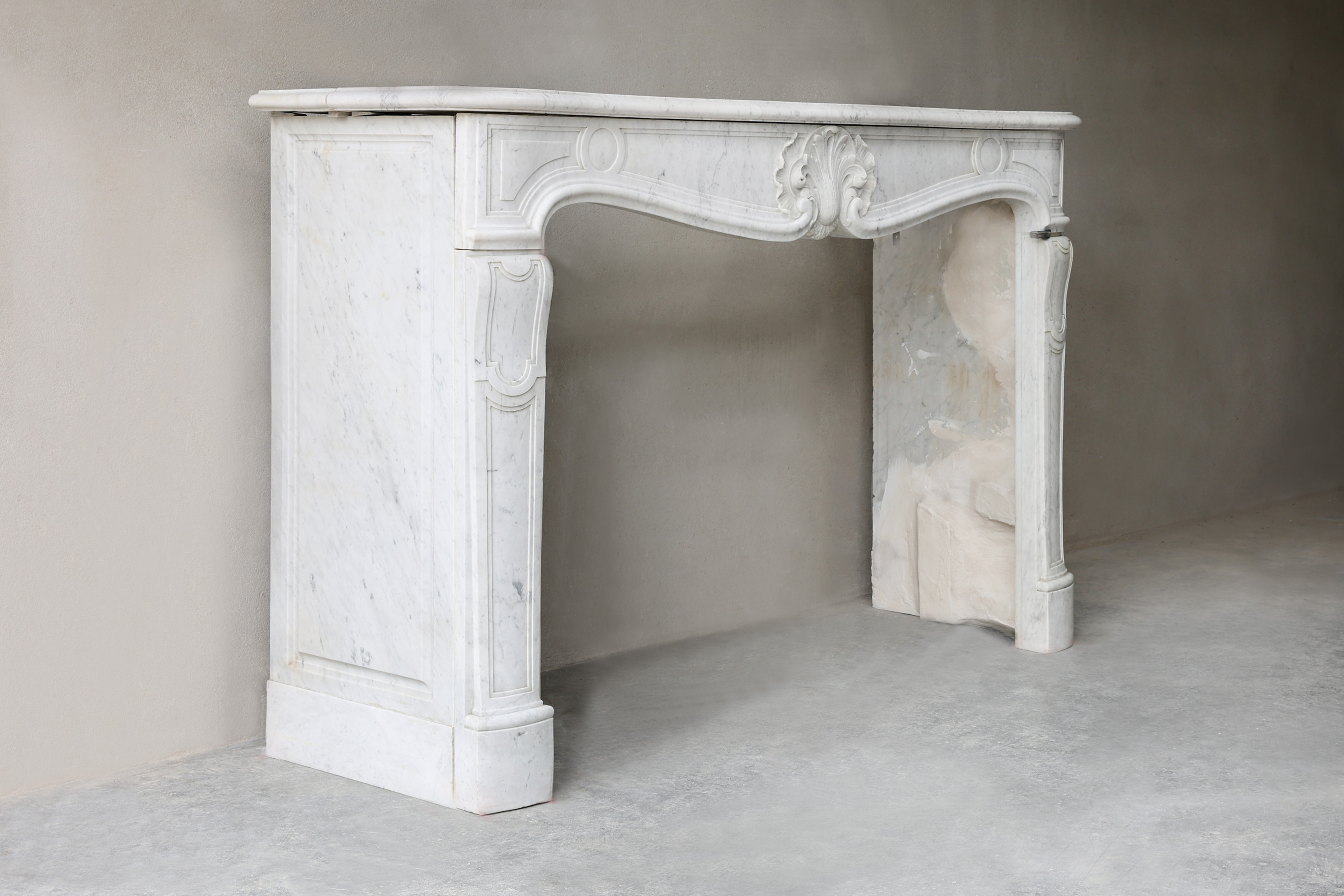 Prachtige schouw in wit Carrara-marmer • Rococo / Louis XV stijl