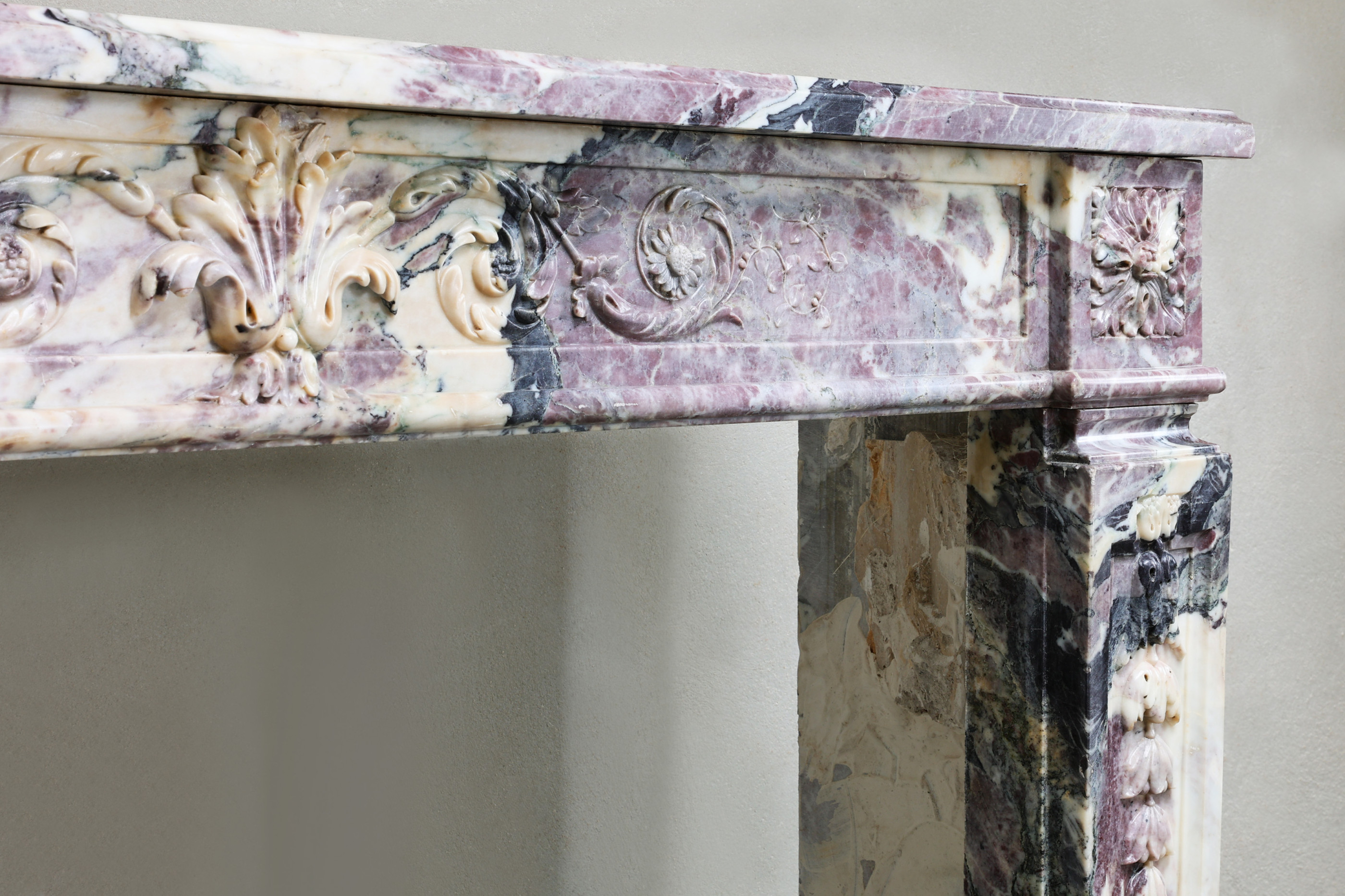 Deze antieke marmeren schouw heeft elegante proporties, verfijnde profileringen en handgesneden details, verrijkt met een prachtig doorleefd oppervlak. De natuurlijke patina vertelt het verhaal van meer dan een eeuw geschiedenis, wat deze schouw een unieke uitstraling geeft voor zowel klassieke als eigentijdse interieurs.