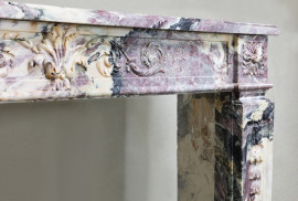 De subtiele rondingen van de bovenlijst en de harmonische verhoudingen weerspiegelen het vakmanschap van 19e-eeuwse steenhouwers. De marmerstructuur vertoont fijne adering en zachte kleurschakeringen, wat de authenticiteit versterkt.