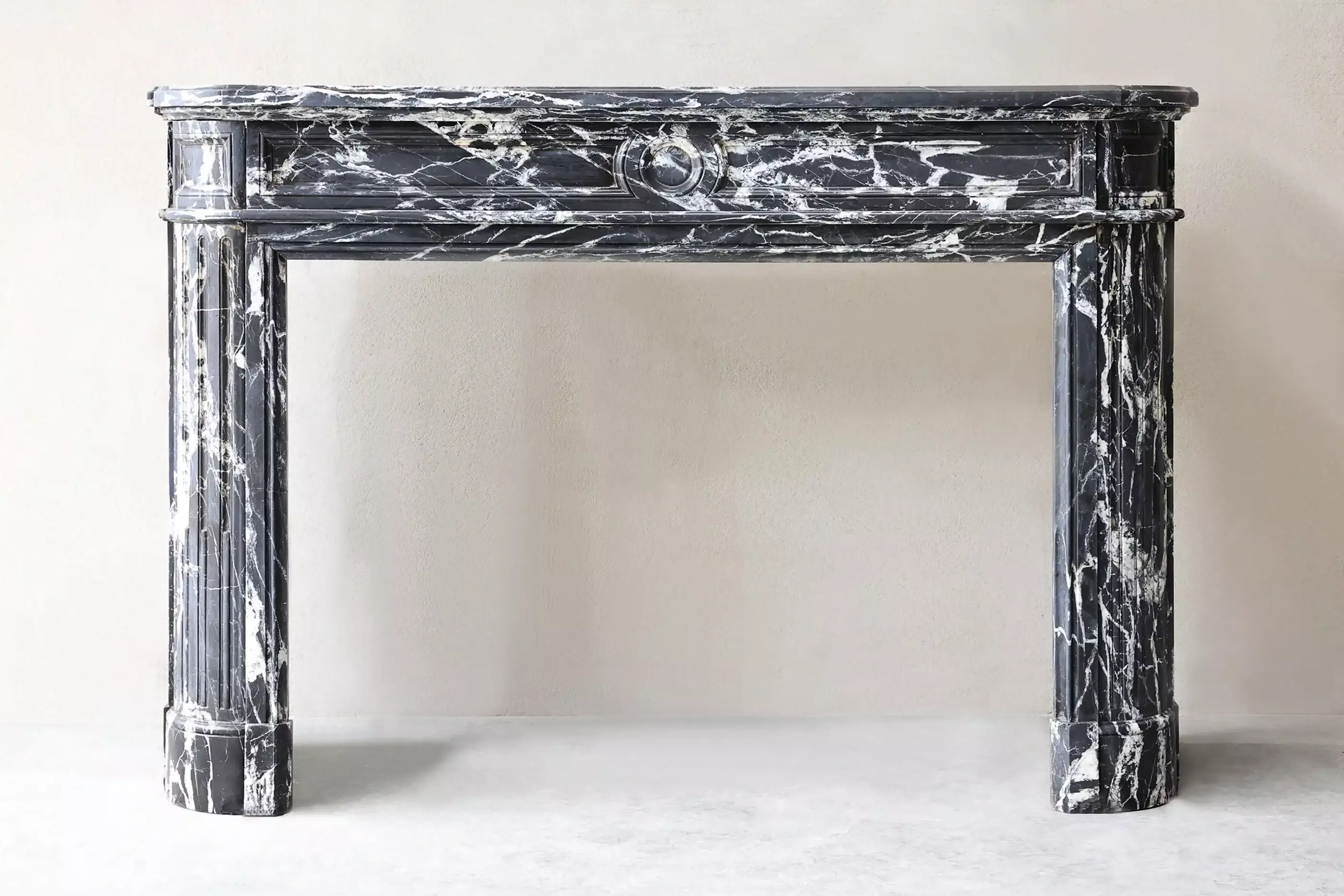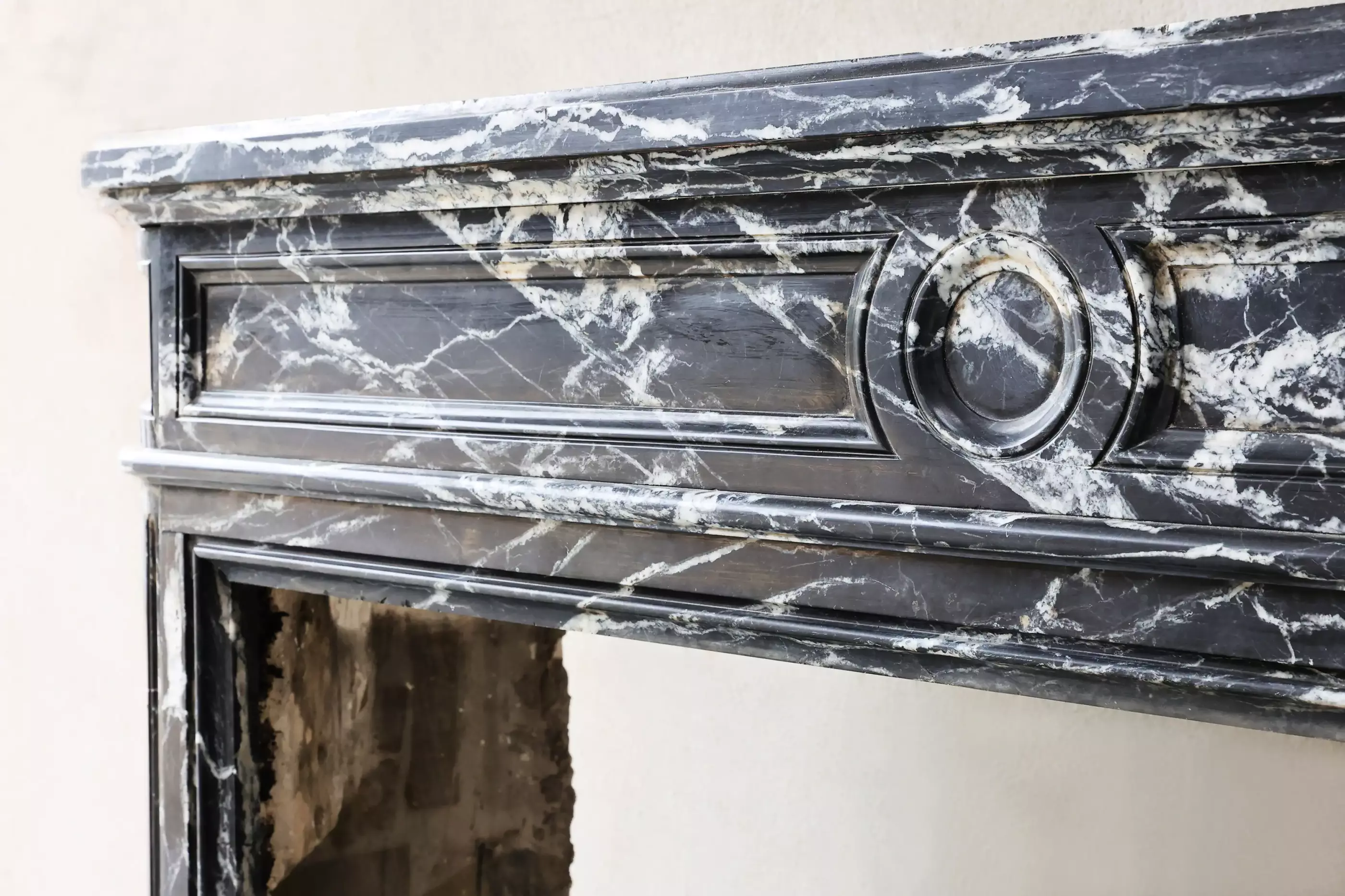 Antieke Nero Marquina schouw in Louis XVI-stijl