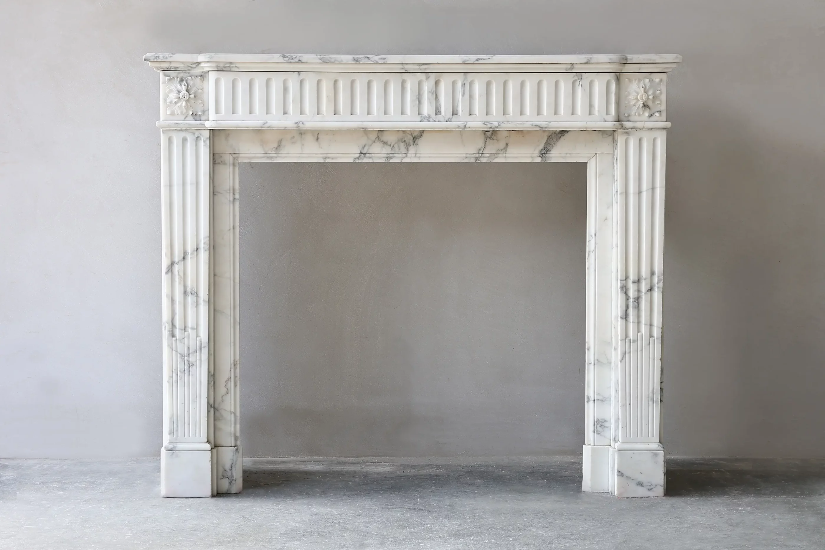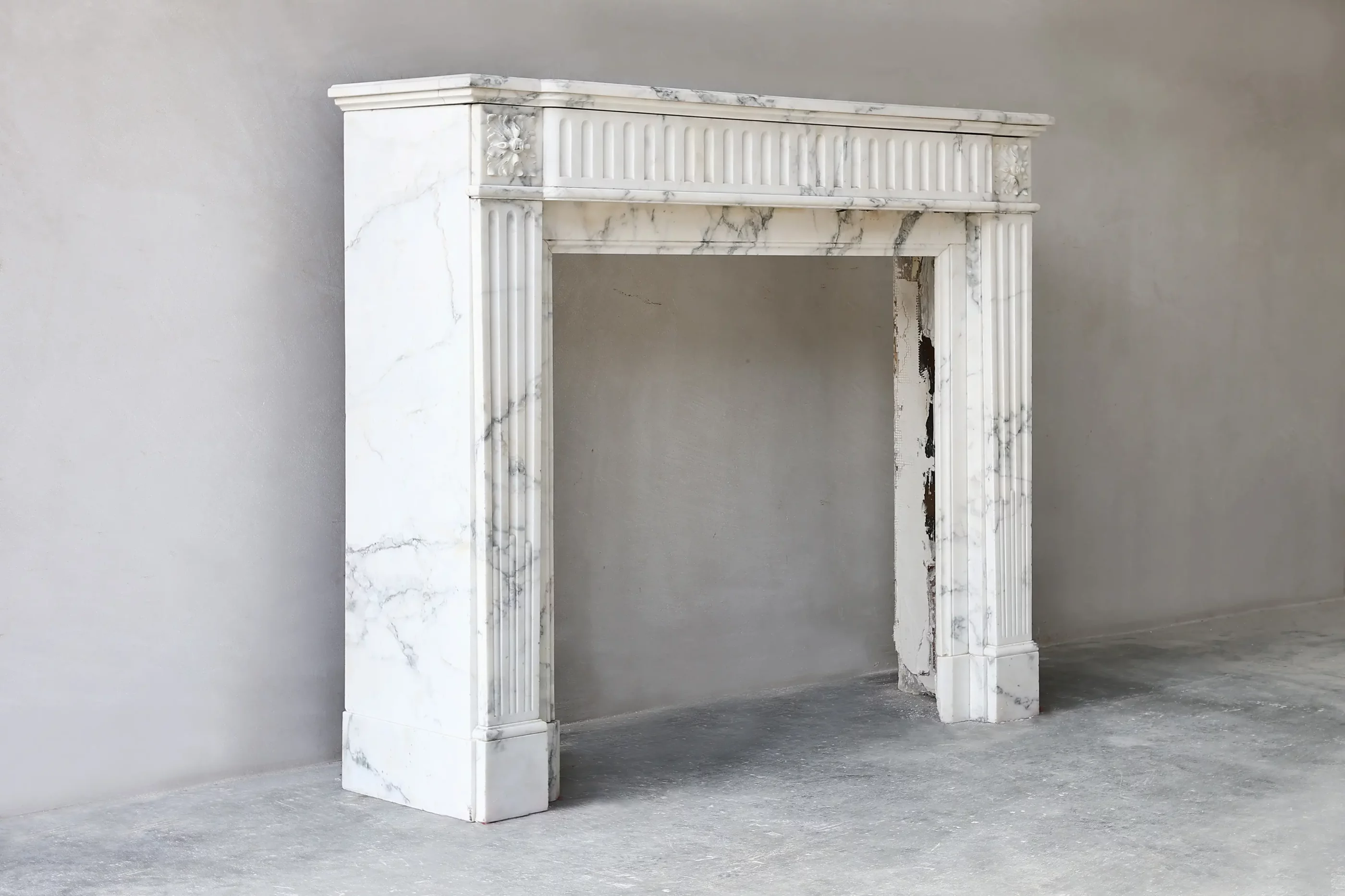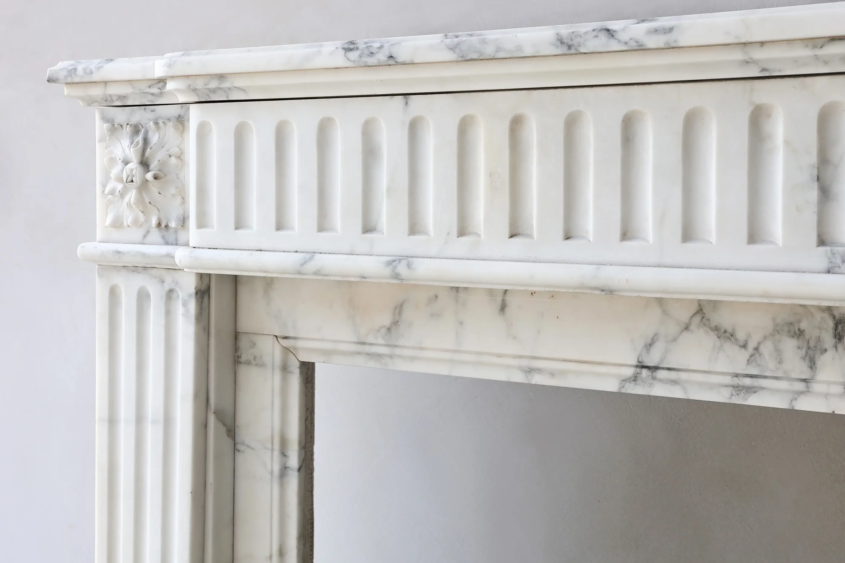 Antieke marmeren schouw van Arabescato marmer – Louis XVI stijl