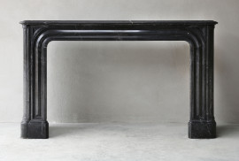 Mooie antieke marmeren schouw van Nero Marquina marmer. Deze marmersoort komt uit het Noorden van Spanje. Bij deze marmersoort zie je witte aders, in tegenstelling tot Noir de Mazy marmer dat egaal zwart van kleur is. Deze schouw stamt uit de 19e eeuw en is in stijl van Louis XIV. Een mooi model door de eenvoud en ronde vormen. Echt een hele mooie marmersoort die chique is en past in zowel een klassieke als moderne woning.