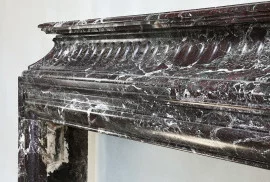 Bijzondere antieke schouw van Levanto marmer uit Italië. Deze schouw stamt uit de 19e eeuw en is in stijl van Louis XVI. Deze schouw heeft mooie canellures in het frontgedeelte en rechte benen. De kleusteling van deze schouw geeft een warme uitstraling.