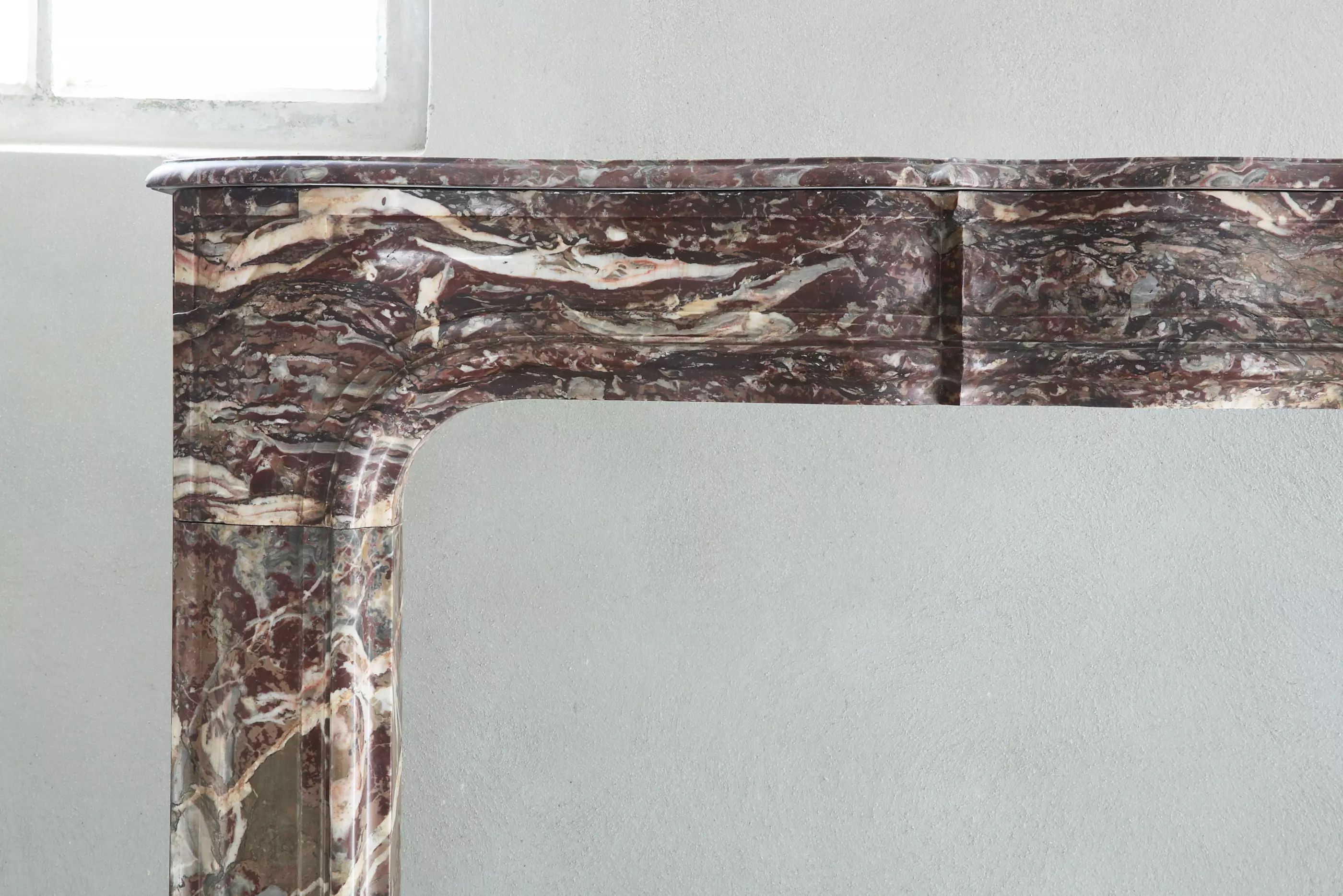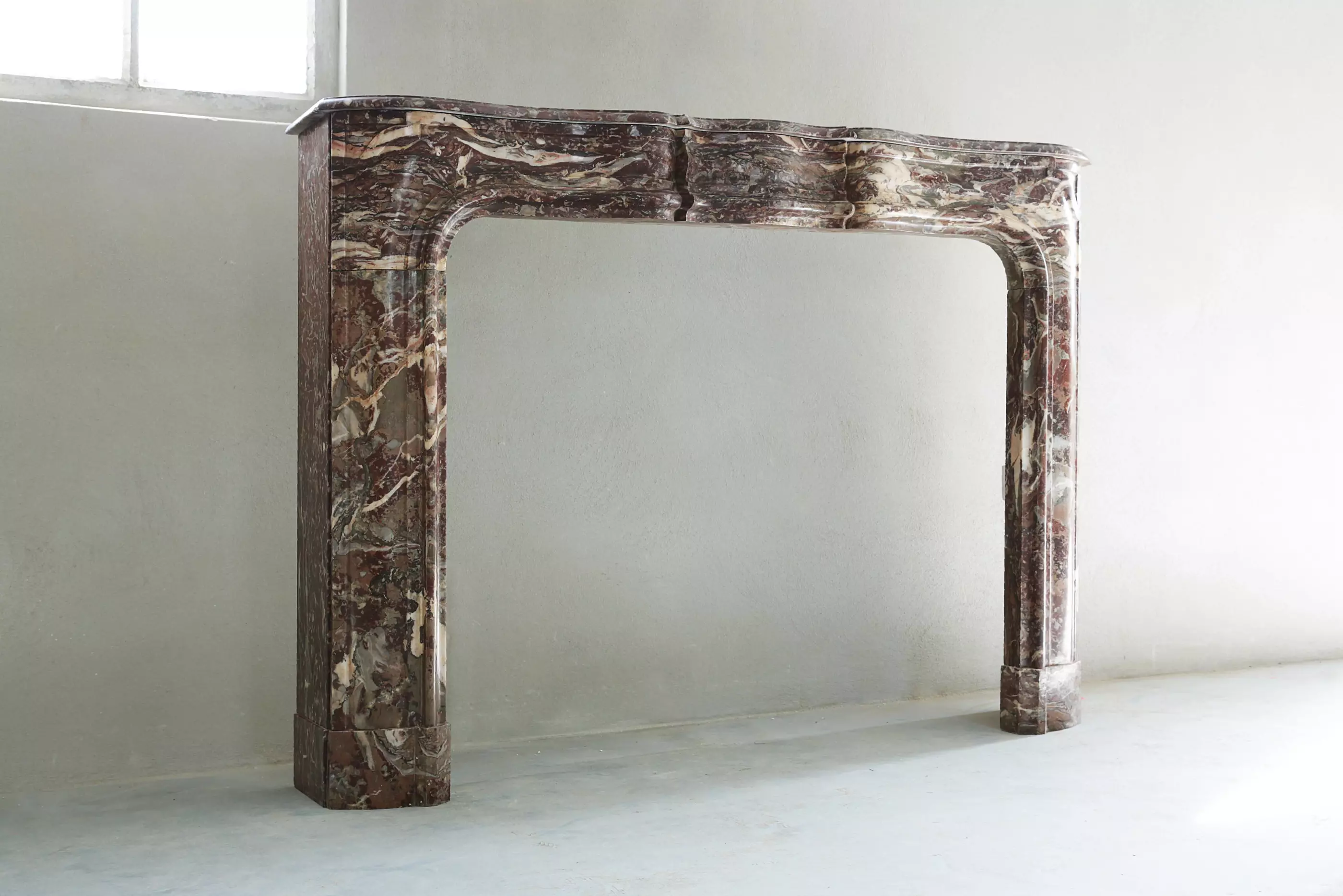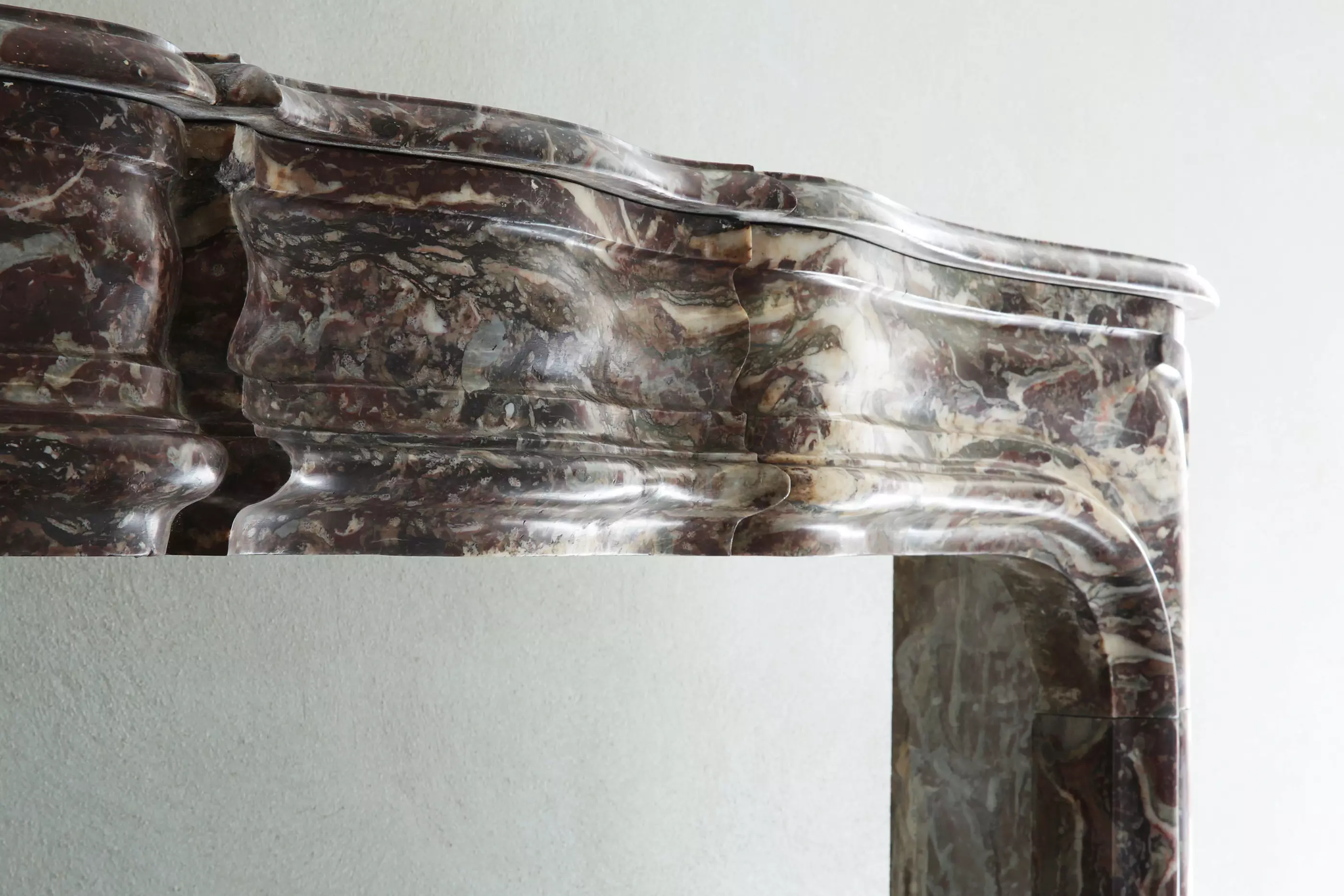Deze aparte antieke schouw kenmerkt zich door de golvende vorm in het frontgedeelte. De omlijsting van deze schouw is samen met de kleurschakering zeer bijzonder en een aanwinst voor elk interieur! De schouw stamt uit de 18e eeuw.