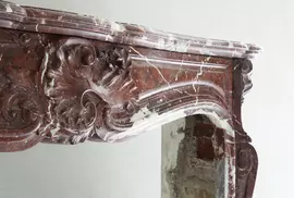 Schitterende antieke marmeren schouw uit de 19e eeuw. Een prachtig natuurproduct zorgt voor de mooie kleurschakeringen van bruin/creme/oranje marmer. De schouw heeft mooie versieringen en is voorzien van 3 coquilles. Ook de omlijsting is heel fraai te noemen bij deze typische Lodewijk XV schouw.