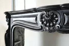 Werkelijk een hele fraaie antieke marmeren schouw uit het tijdperk van Lodewijk XV! Een echte Noir de Mazy (diepzwart) uit België. Deze prachtige schouw toont in elk interieur zeer fraai door zijn sierljke vorm en nostalgische uitstraling.