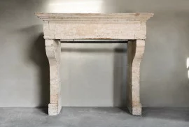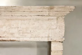 Zeer imposante kasteelschouw van Franse kalksteen uit de 19e eeuw. Deze antieke mantel heeft een prachtig breed frontgedeelte waardoor de schouw nog robuuster is! Het is een rustieke open haard met weinig ornamenten en mooie belijningen.