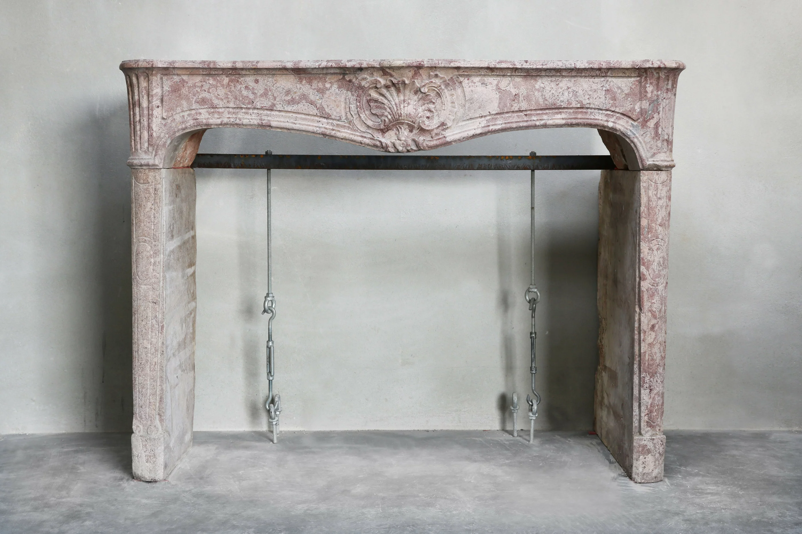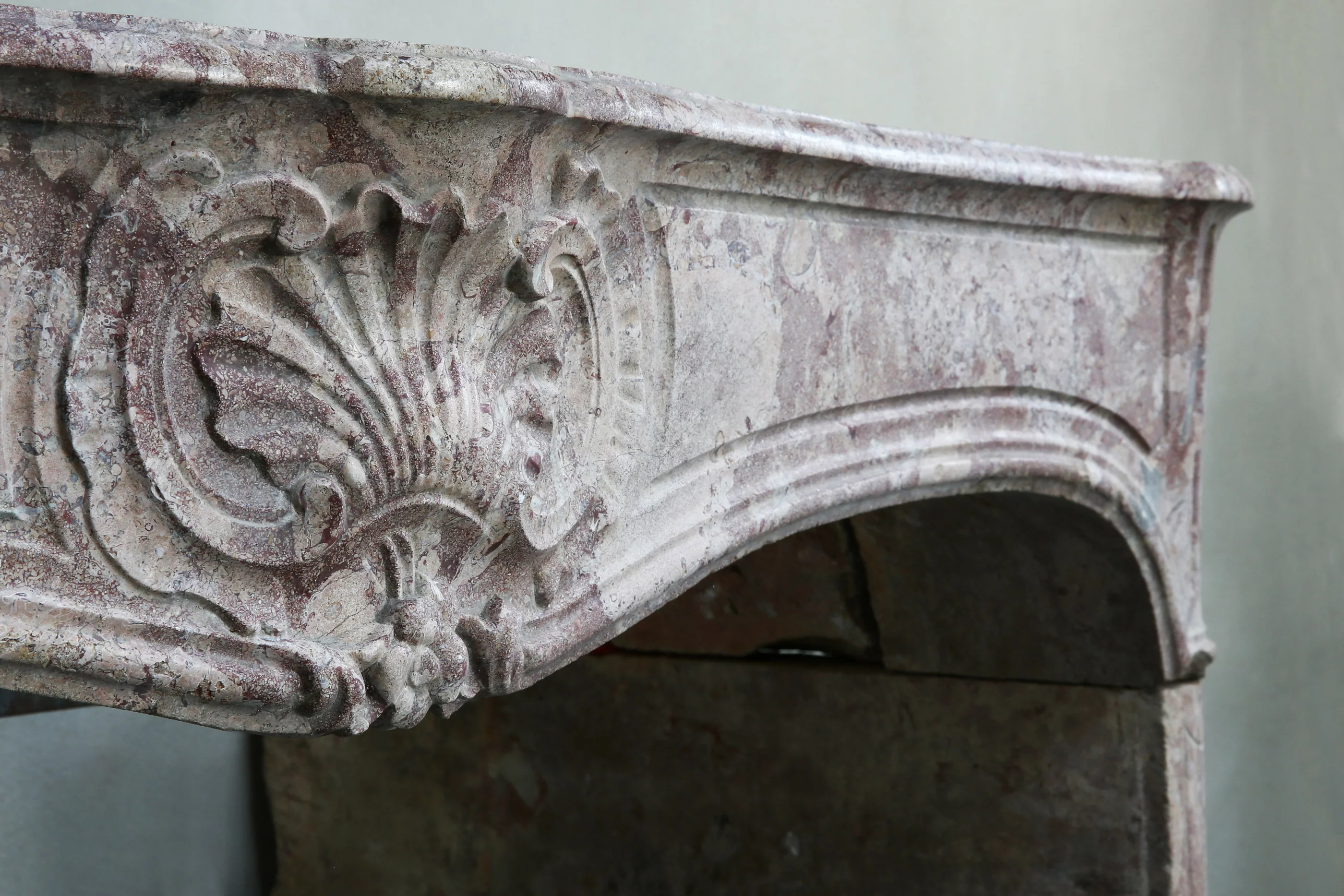 Prachtige antieke schouw van marmersteen! Een zeer bijzonder exemplaar door de kleur. Dit is een kleur die we niet zo vaak zien en dat maakt deze antieke schouw uniek. Deze schouw stamt uit de 19e eeuw en is in stijl van Louis XV. Vaak worden deze schouwen gekenmerkt door de coquille in het midden.