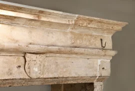 Zeer imposante kasteelschouw van Franse kalksteen! Deze robuuste antieke schouw stamt uit de 19e eeuw en is in stijl van Louis XIII. Een prachtige open haard van formaat. De breedte van deze schouw is maar liefst 245 cm. Het mooie ornament in het midden van het frontgedeelte samen met de belijningen en dik bovenblad zorgen voor een authentieke uitstraling.