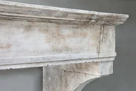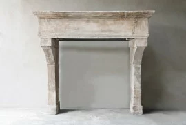 Robuuste kasteelschouw uit de 18e eeuw van Franse kalksteen. Deze indrukwekkende open haard heeft mooie belijningen en breed frontgedeelte. De obelisque benen passen goed bij de warme uitstraling van deze schouw.