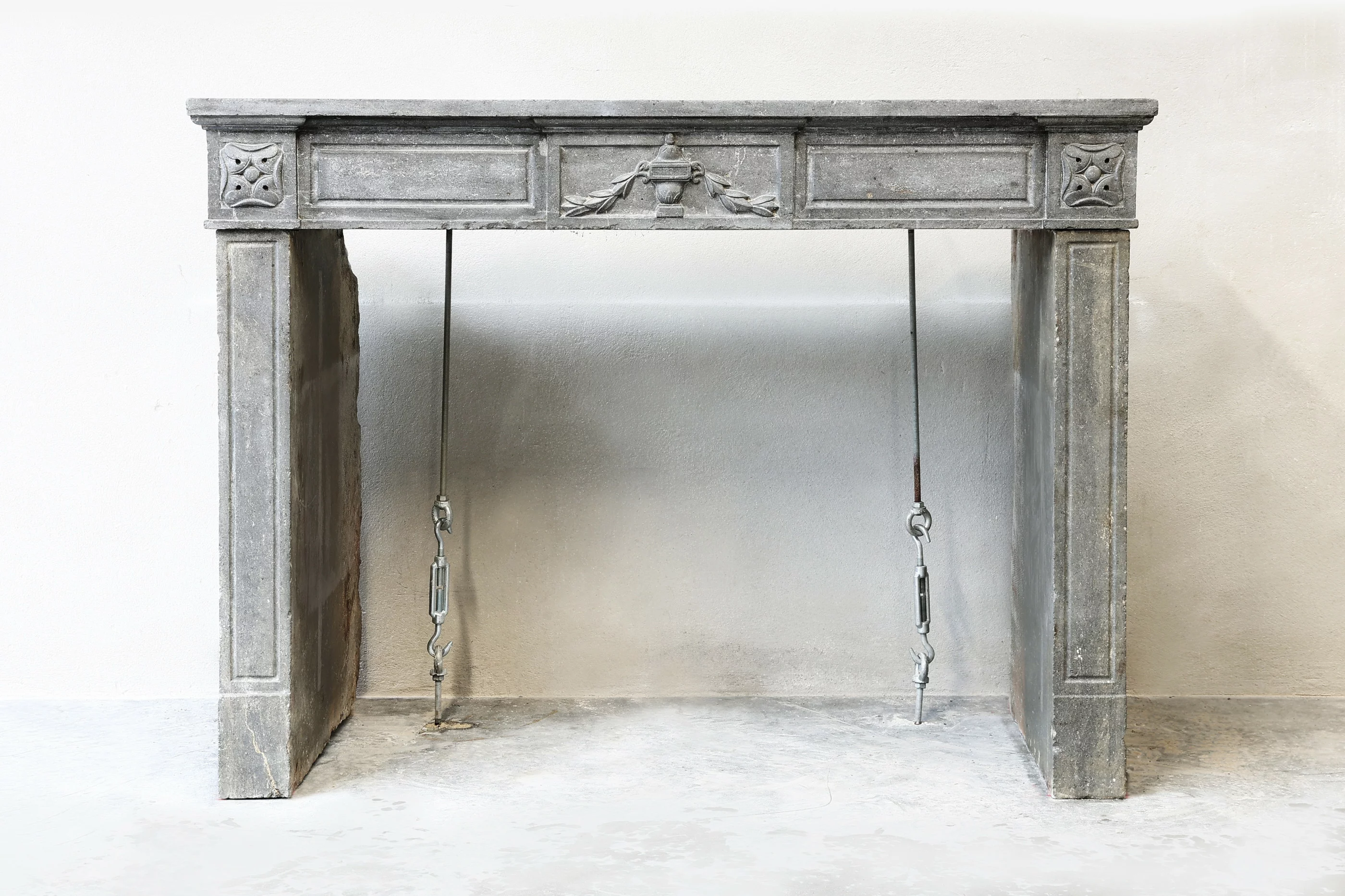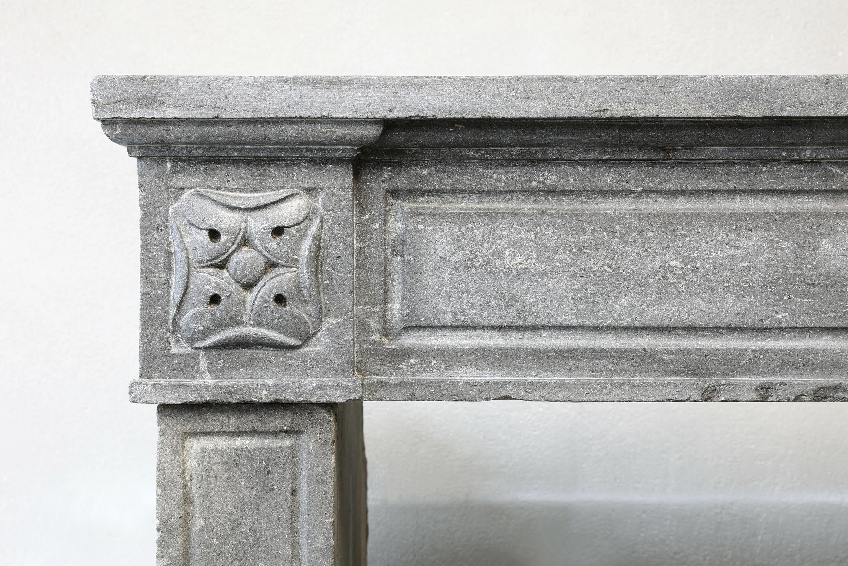 Prachtige antieke schouw van grijze marmersteen. Een schouw in stijl van Louis XVI met sierlijke ornamenten in het bovenblad en mooie belijningen op de benen. Deze schouw stamt uit de 19e eeuw en heeft een strakke, maar toch elegante uitstraling!