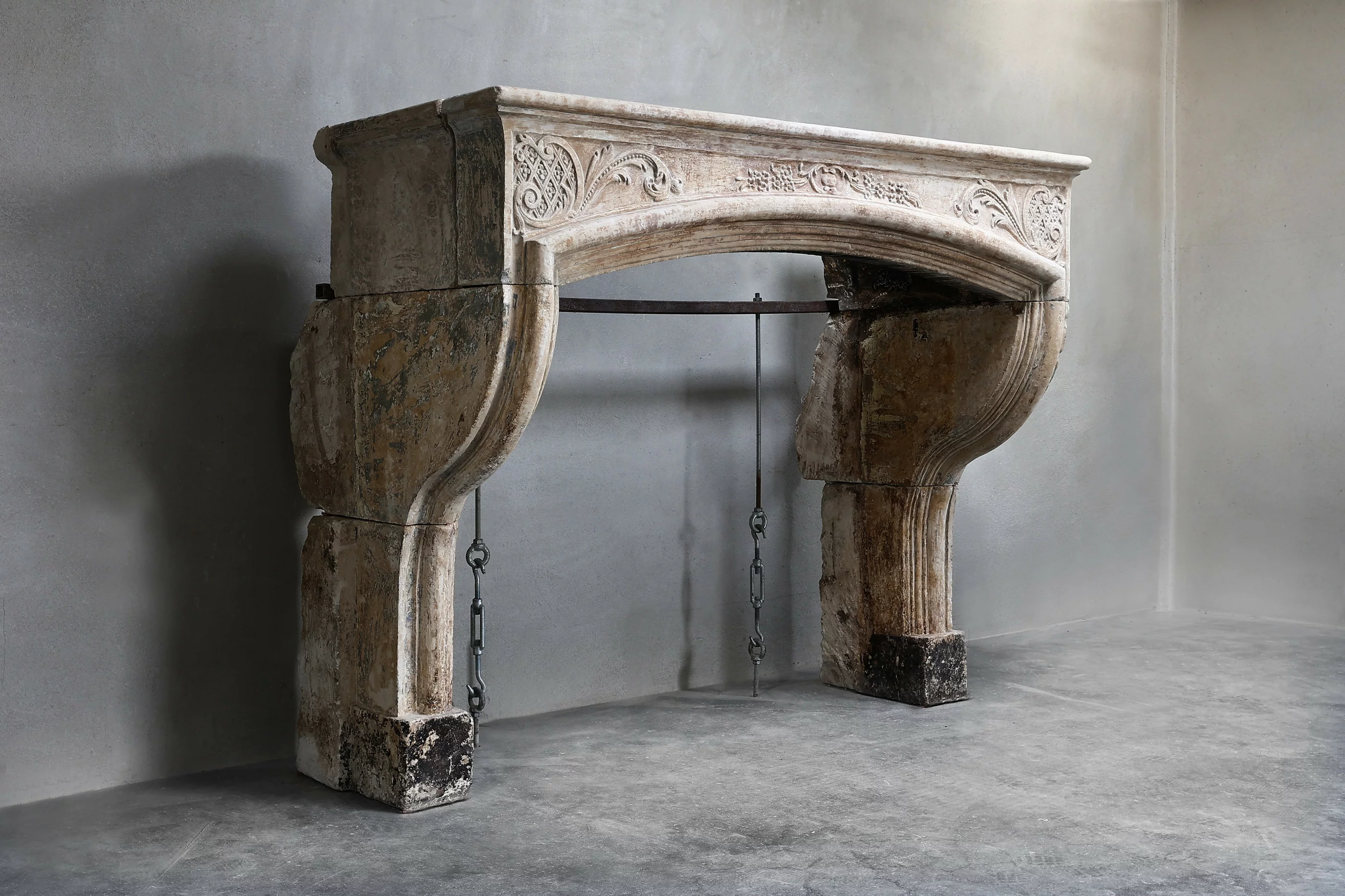 Zeer mooie en decoratieve schouw van Franse kalksteen. Deze antieke mantel is voorzien van diverse sierlijke ornamenten in het frontgedeelte. De schouw heeft mooie vormen, belijningen en een warme uitstraling! Ook het formaat is voor vele interieurs geschikt. Deze open haard is in stijl van Louis XIV.