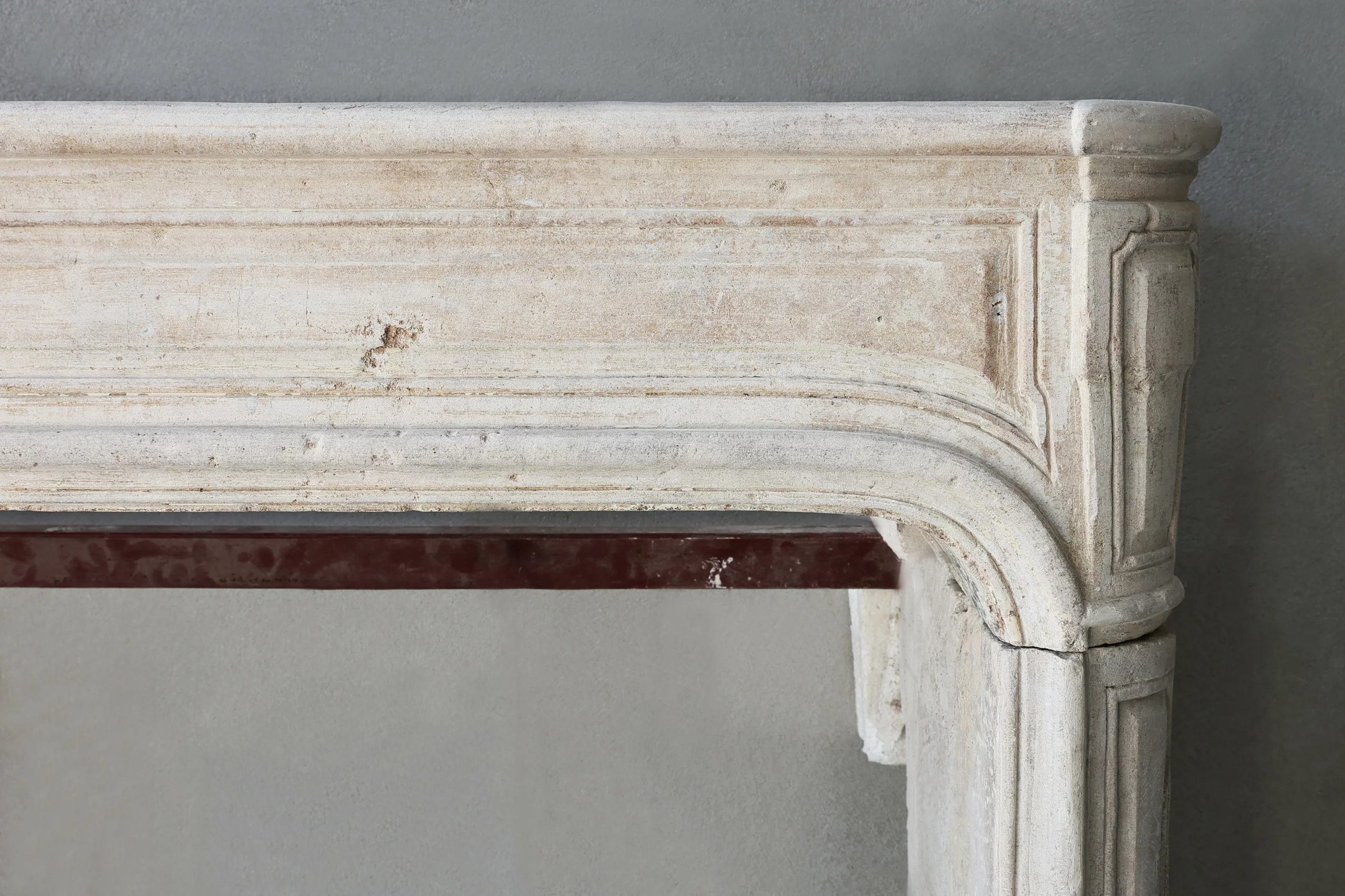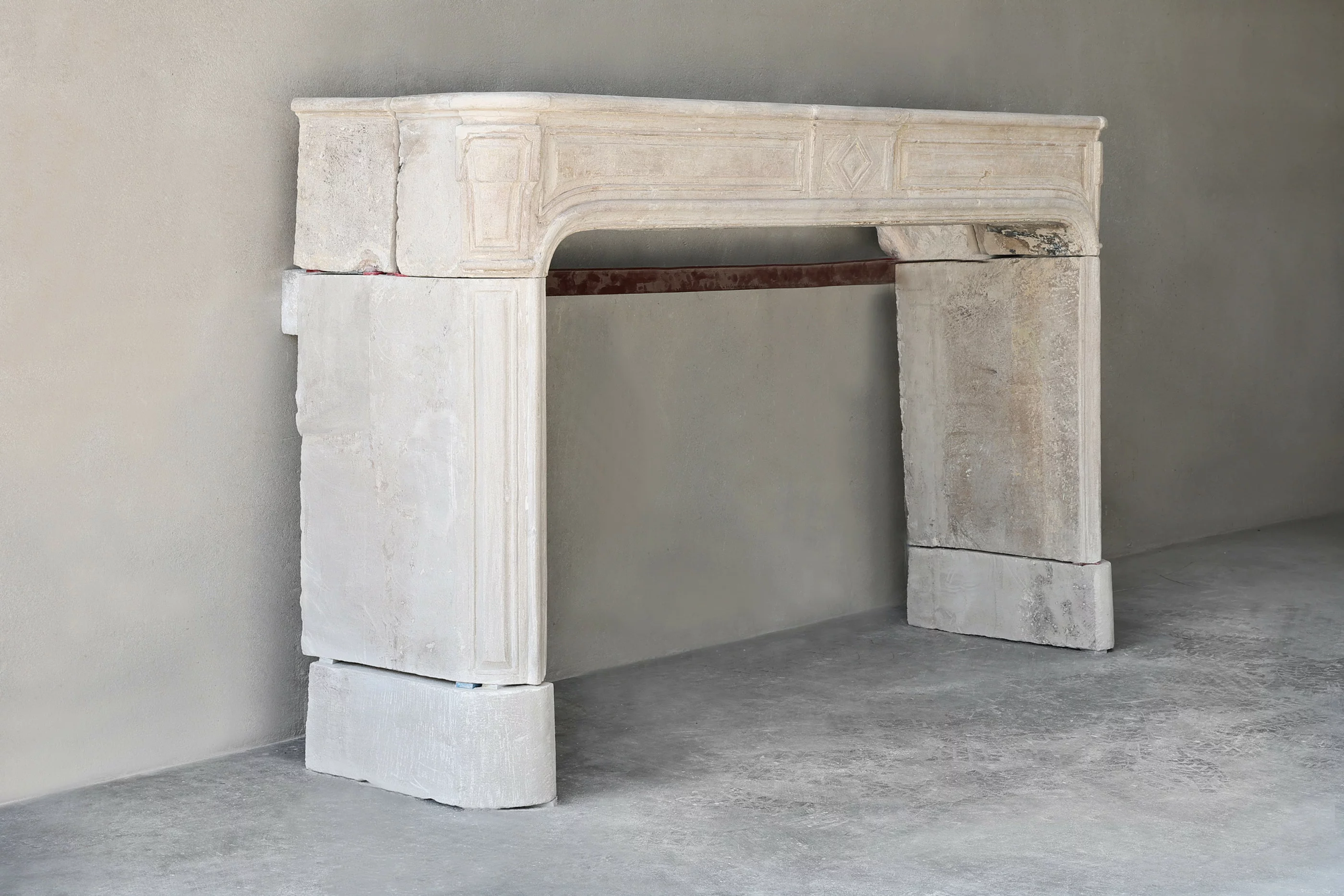 Elegante schouw van Franse kalksteen uit de 19e eeuw! Deze antieke schouw heeft mooie belijningen en ornamenten en is rustig qua uitstraling! Een open haard met een warme uitstraling die toepasbaar is in vele interieurs.
